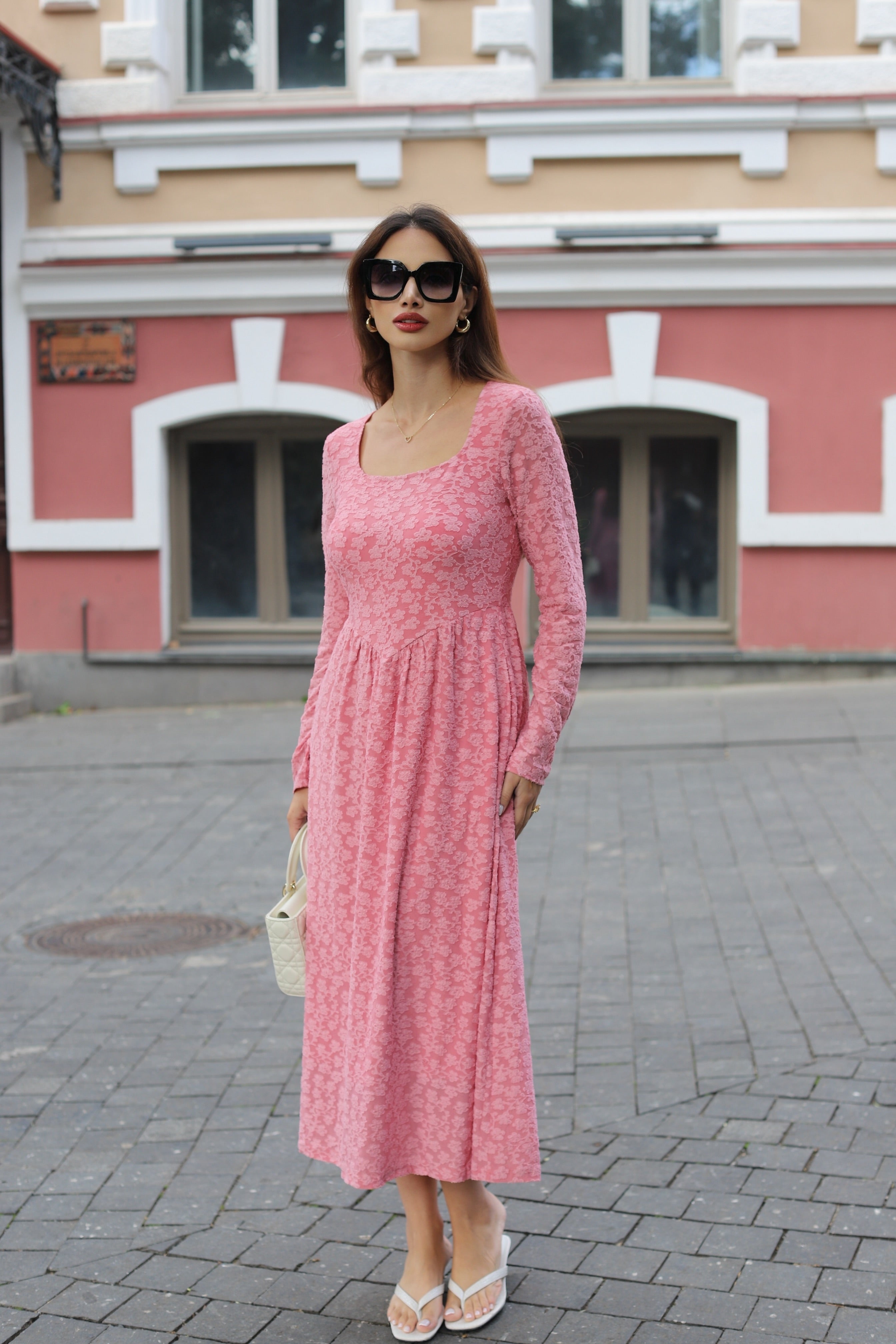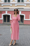 Features: Long sleeve, square neckline, slim fit bodice, boho floral, a-line silhouette, mid-length, two side pockets, curved detail on the front, pleated design, classic solid color, midi maxi dresses for women, fall winter dresses for women 2025