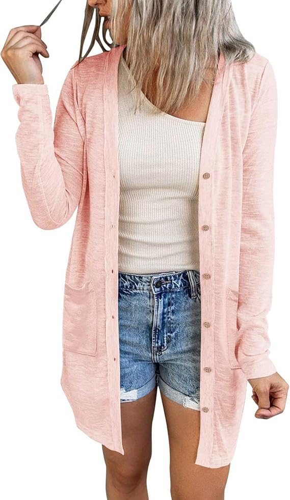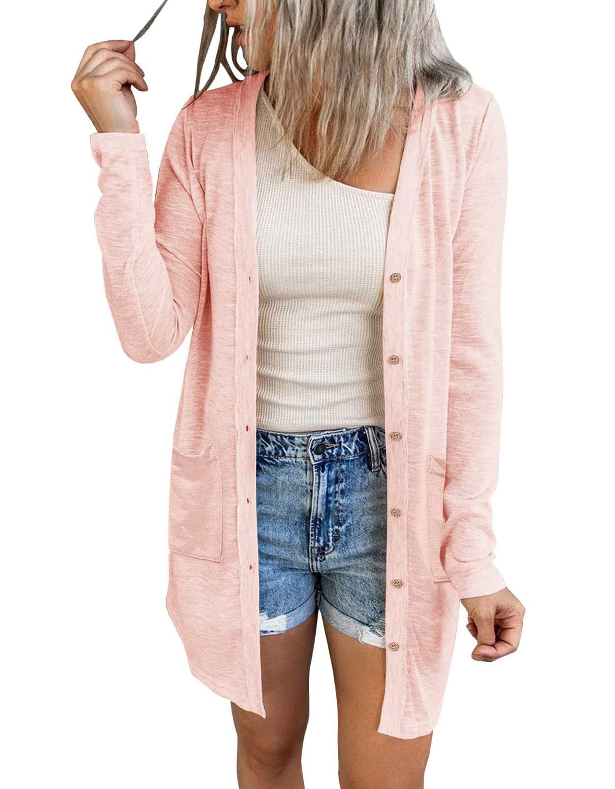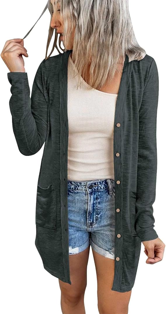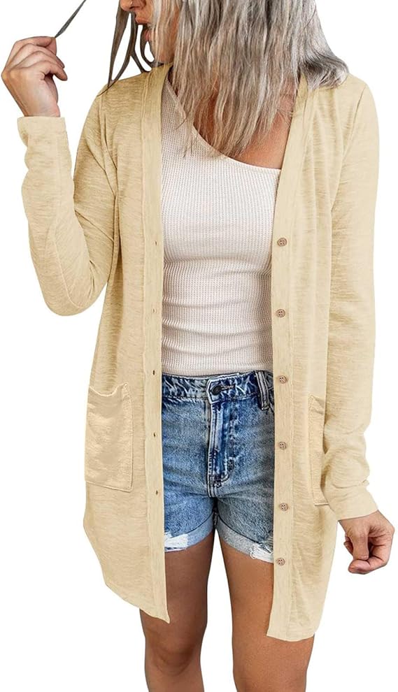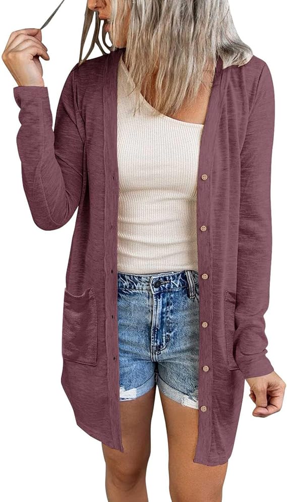MEROKEETY Women's Open Front Lightweight Cardigan Long Sleeve Button Down Loose Outwear with Pockets