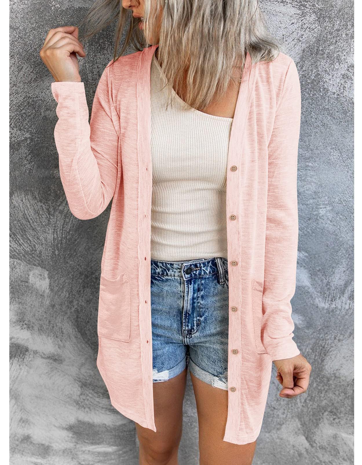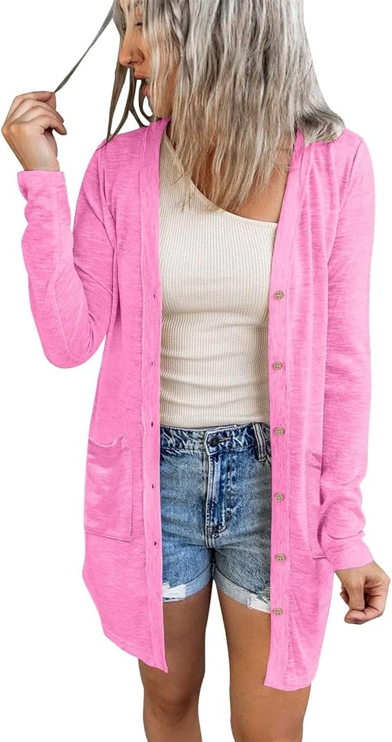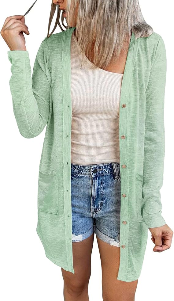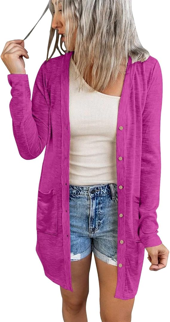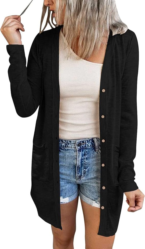 MEROKEETY Women's Open Front Lightweight Cardigan Long Sleeve Button Down Loose Outwear with Pockets