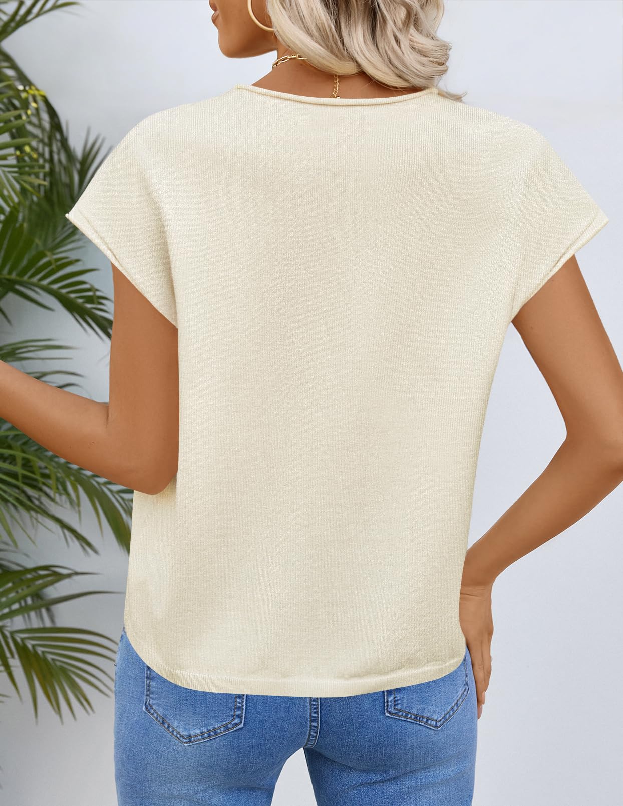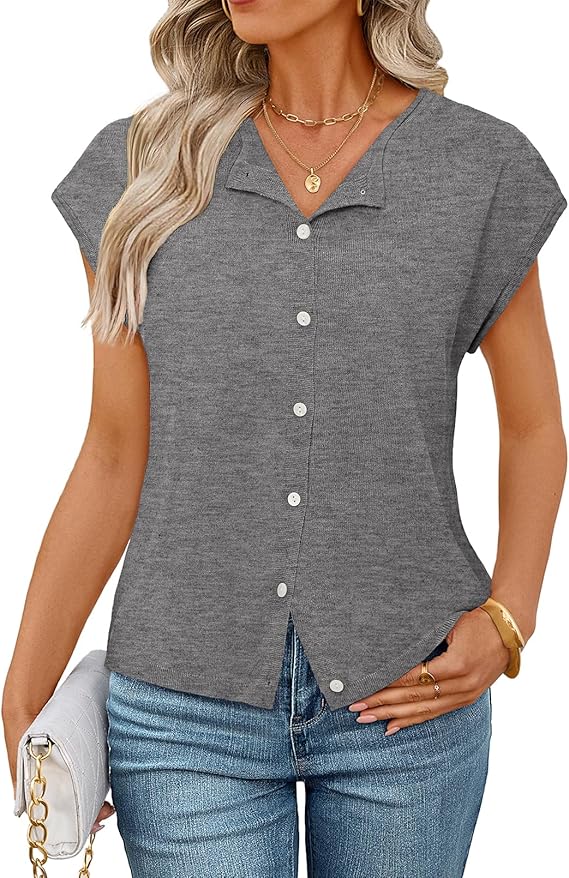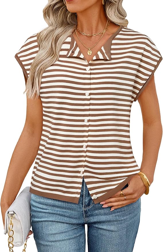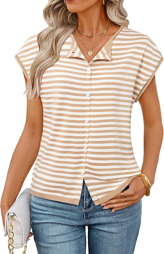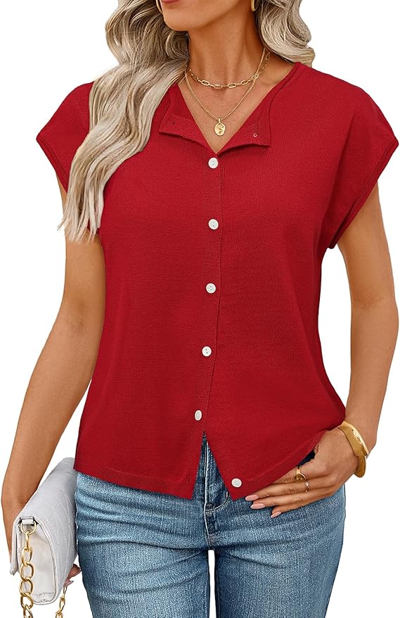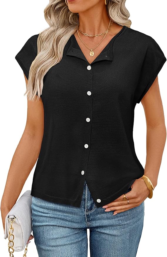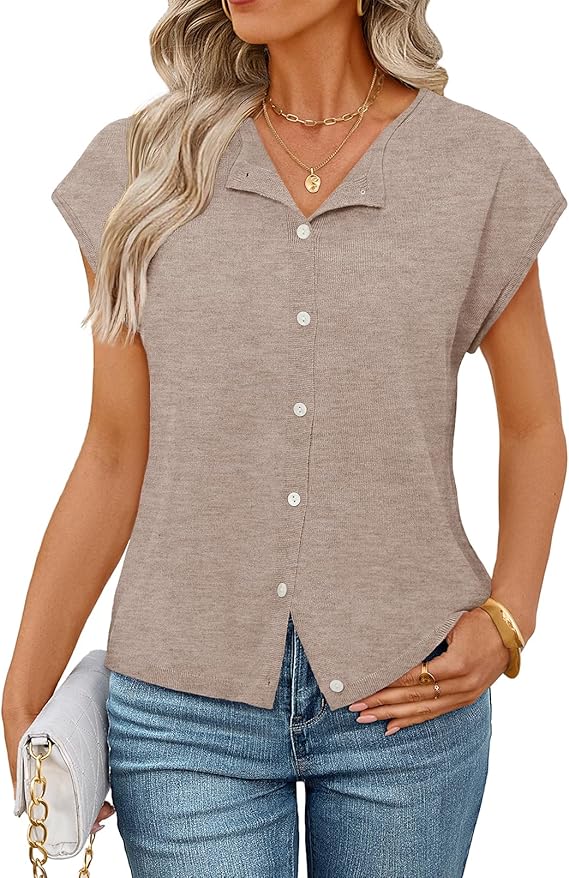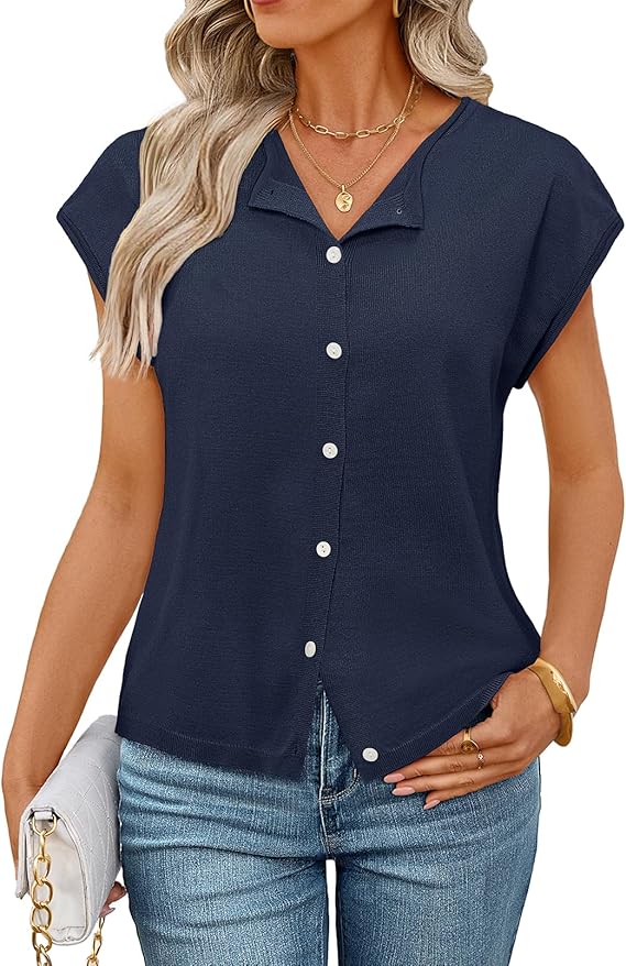 MEROKEETY Women's Summer Cardigan Sweaters 2026 Crewneck Cap Sleeve Casual Knitted Tops Button Down Shirt Blouse
