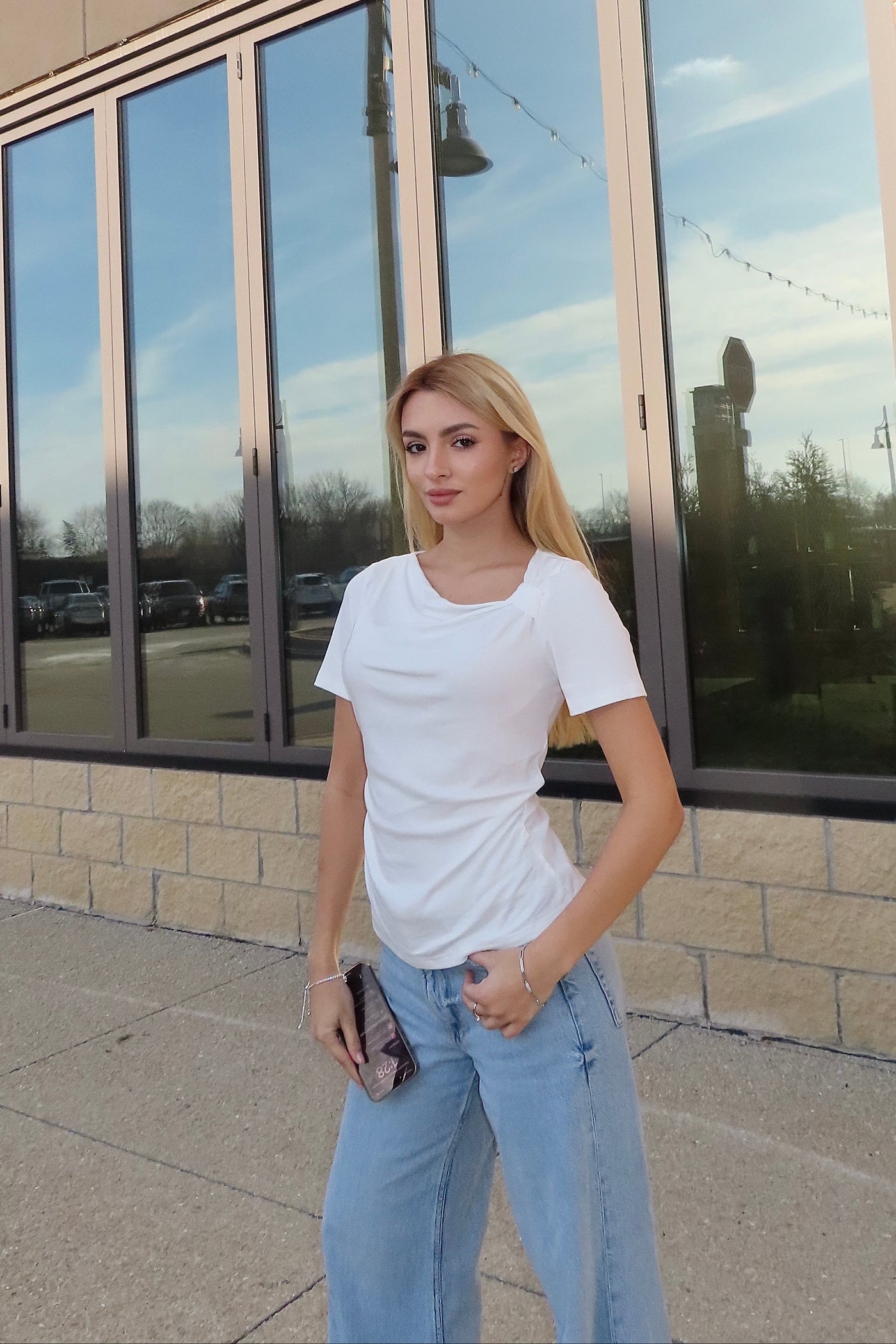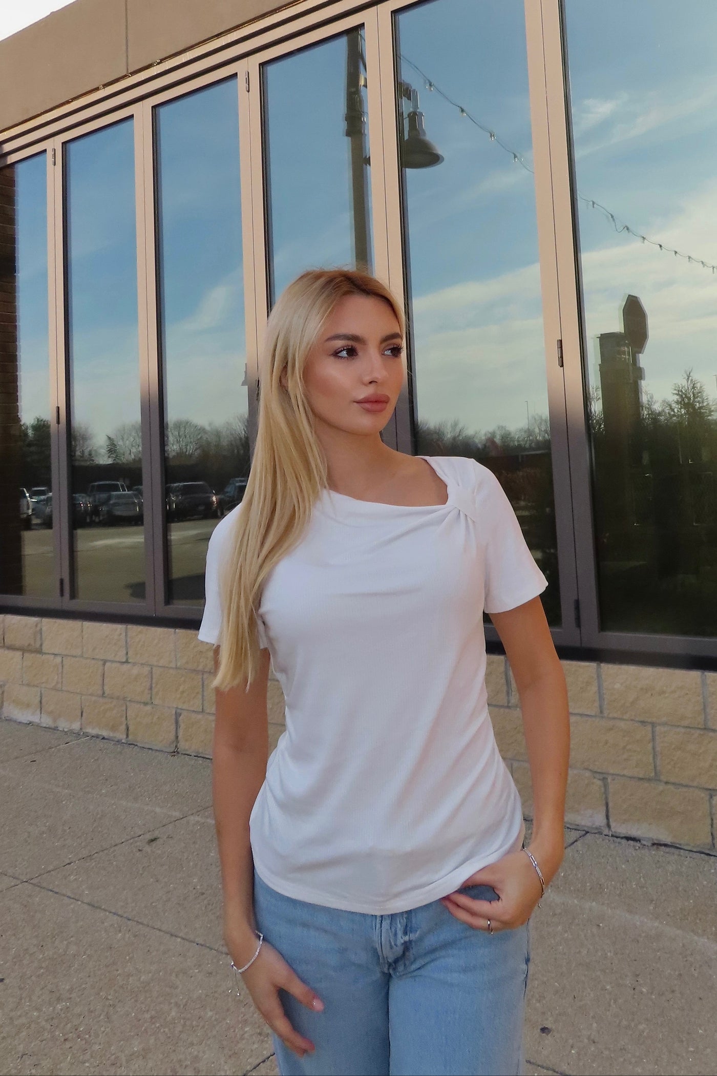 Features: The short sleeve shirts for women feature asymmetrical neck, ribbed knit texture, twist knot detail, side ruched, solid color, casual tops for women, y2k shirts, womens basic tops, womens work tops, ruched tops for women, womens shirts dressy casual, asymmetrical tops for women