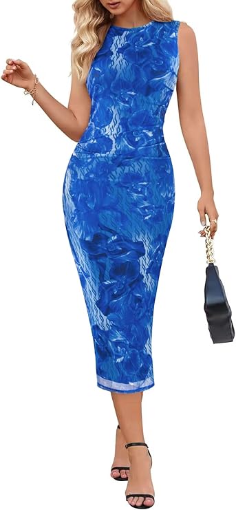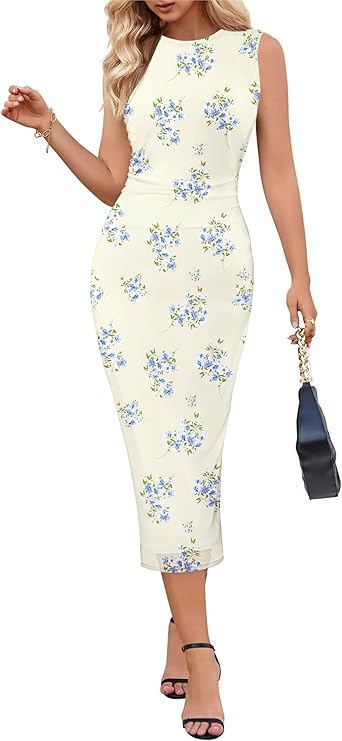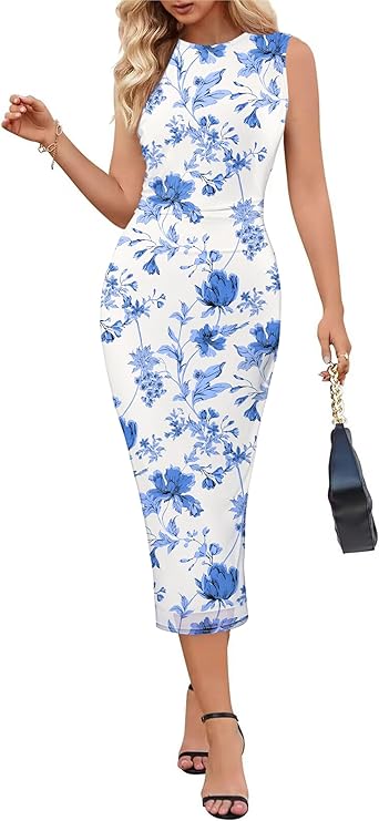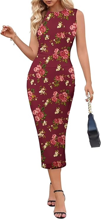 MEROKEETY Bodycon Dresses for Women Casual Sleeveless Fitted Date Night Out Sexy Y2K Tank Maxi Dress