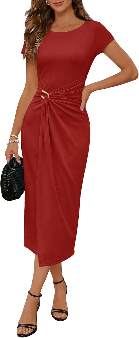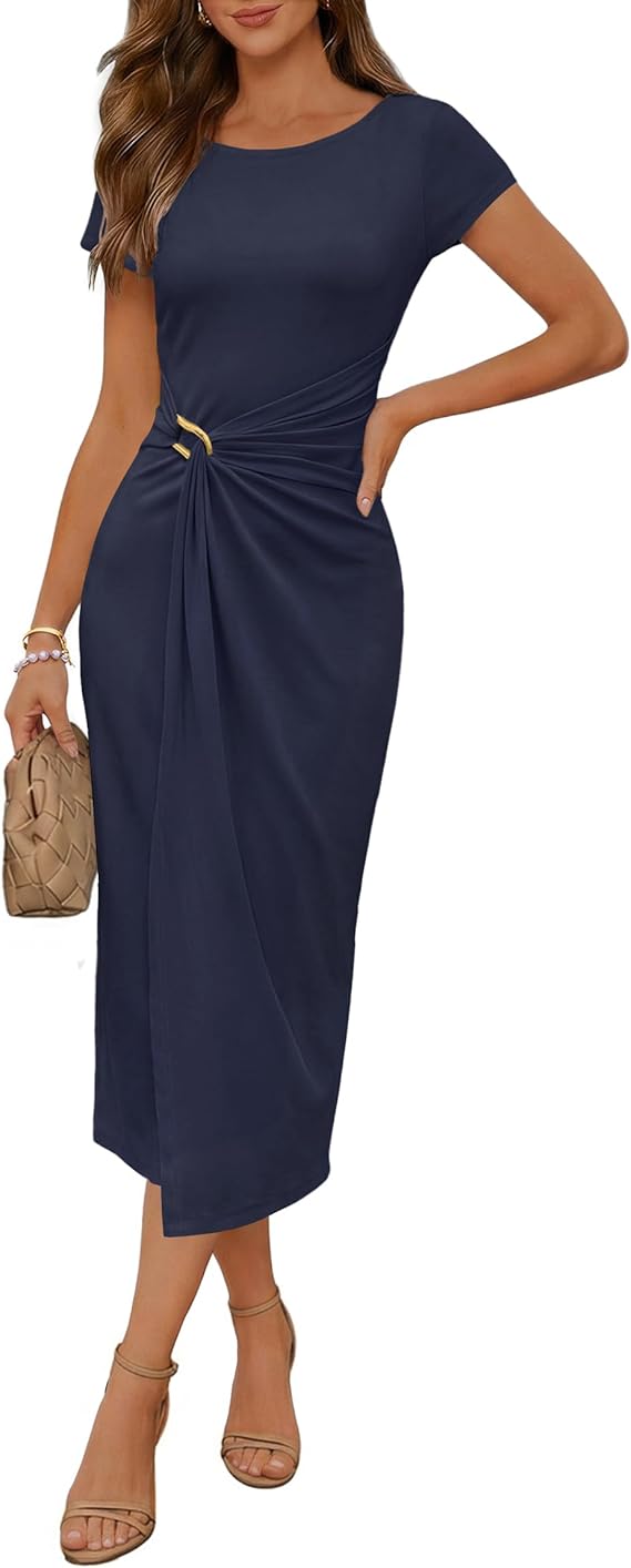 MEROKEETY Women's 2026 Cocktail Party Midi Dresses Summer Spring Boat Neck Ruched Cap Sleeve Wedding Guest Bodycon Long Dress