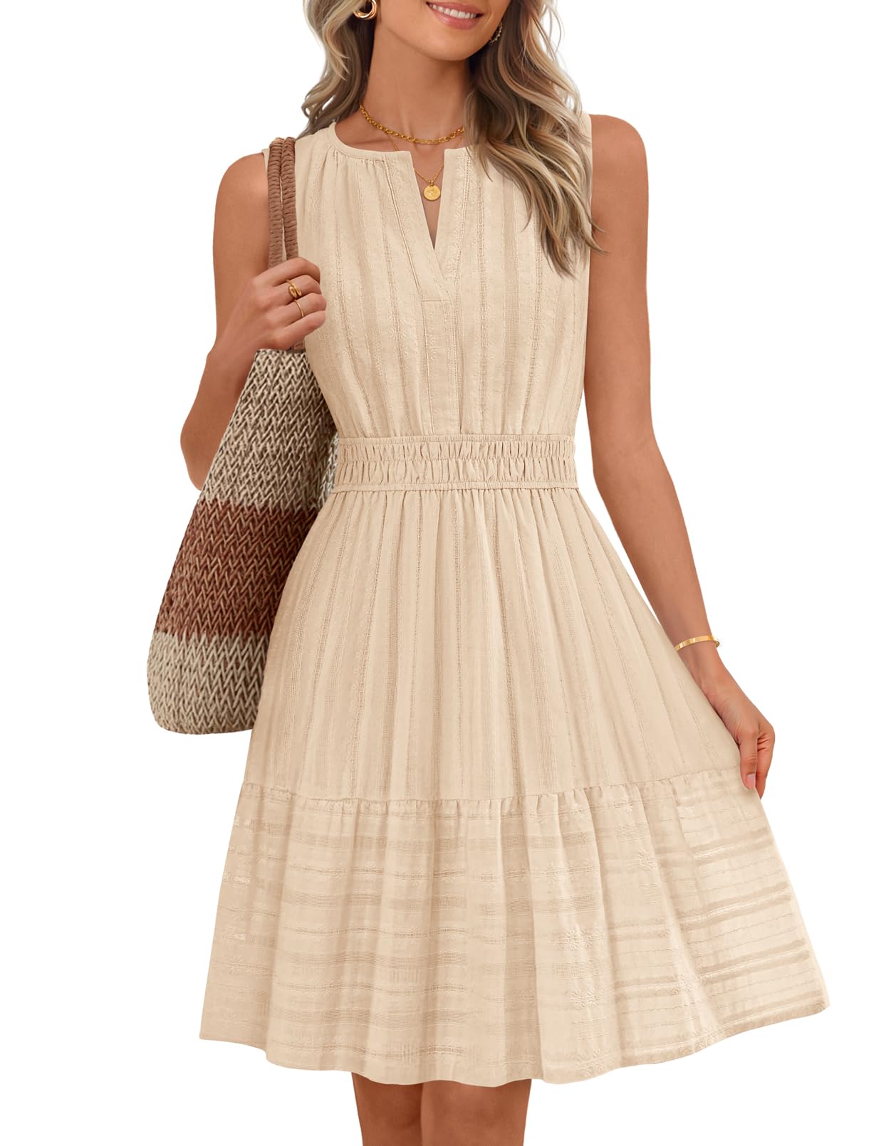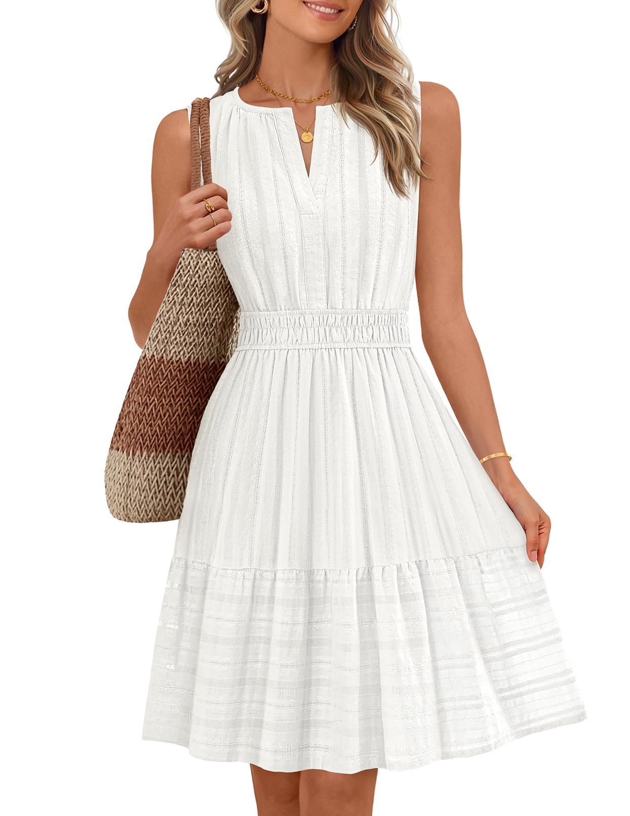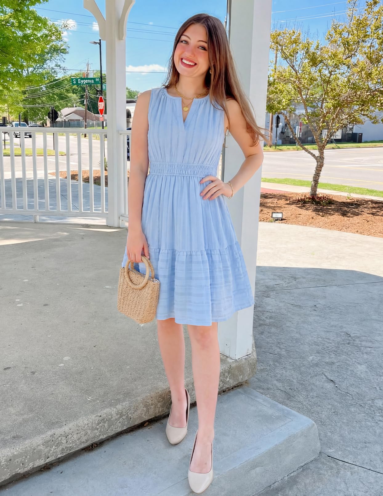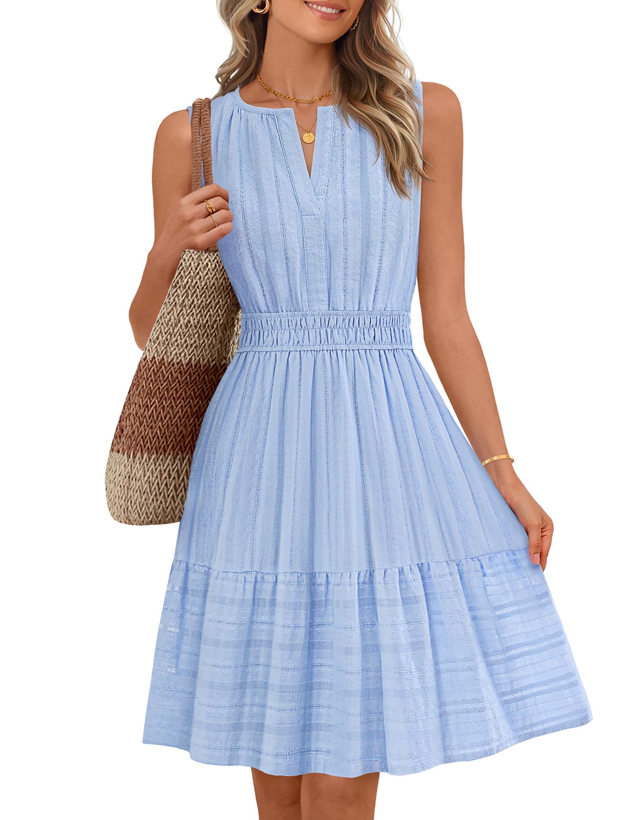 MEROKEETY Women's 2026 Summer Casual Mini Sundress Beach Vacation Sleeveless V Neck Flowy A Line Dress with Pockets