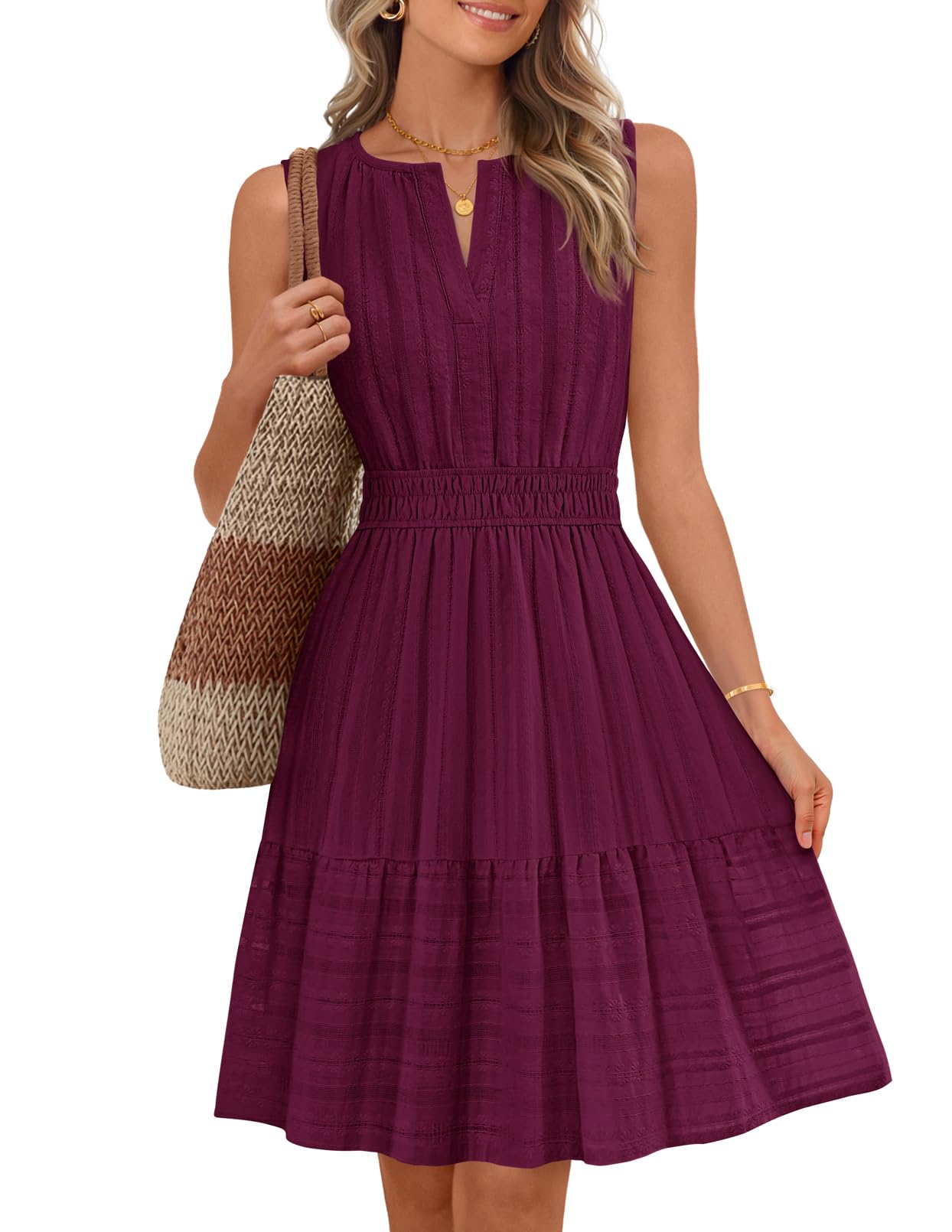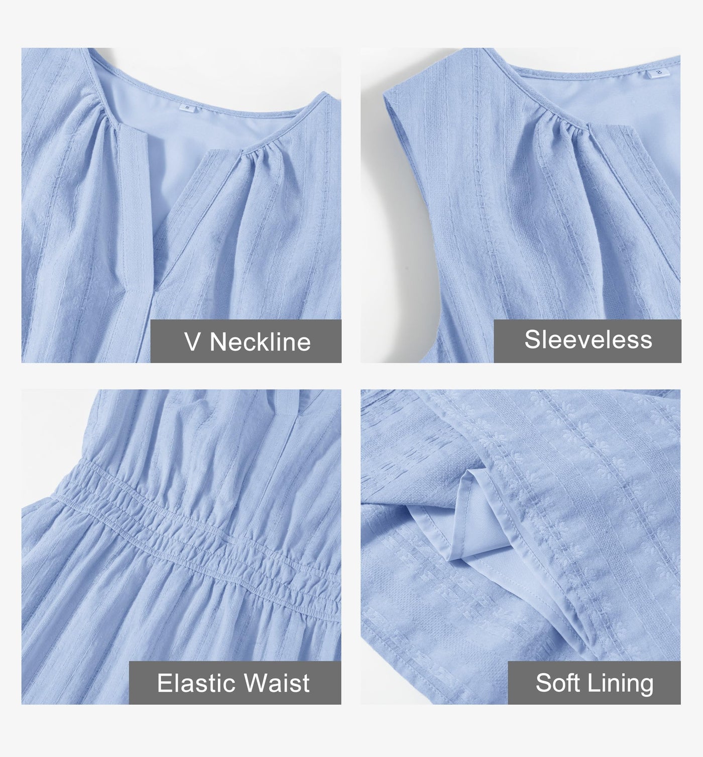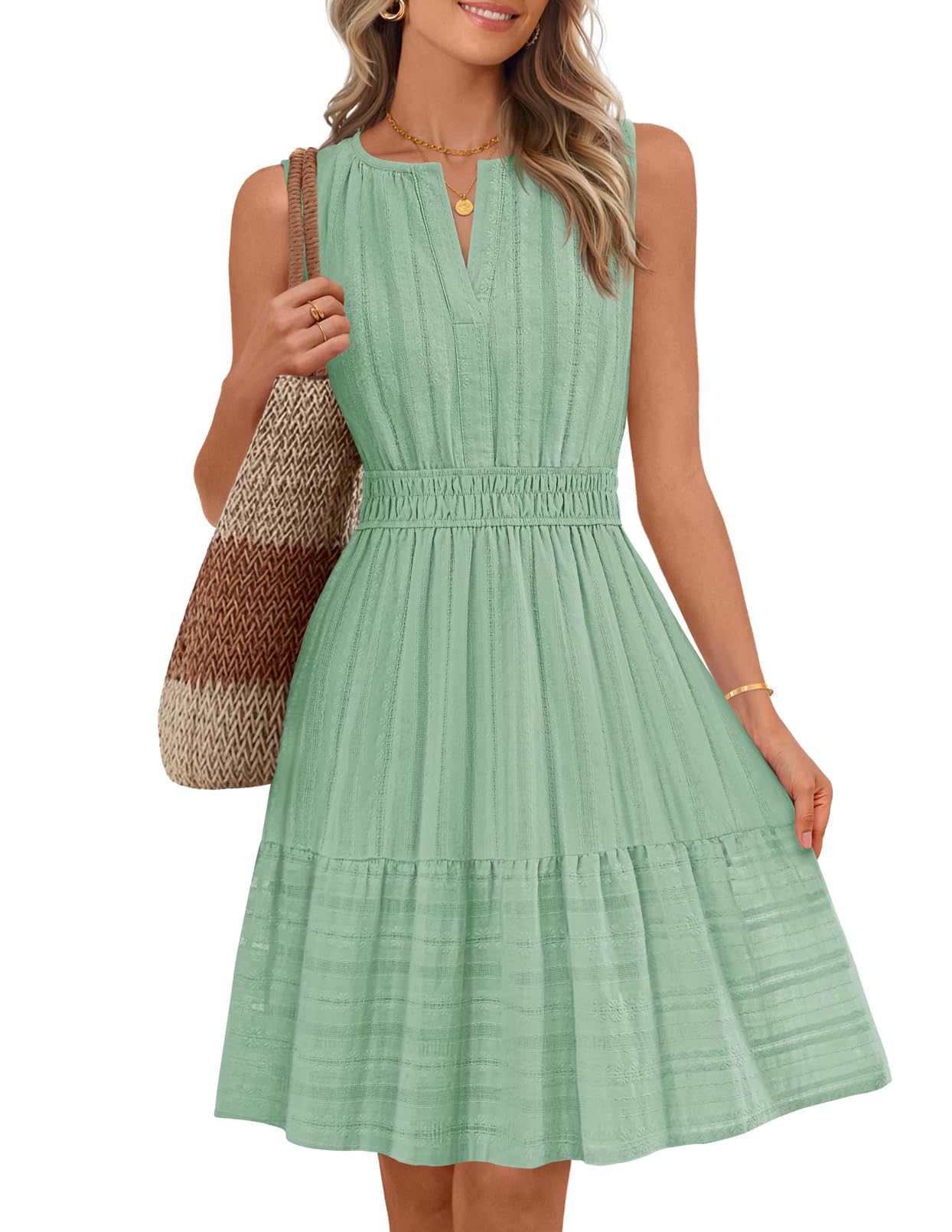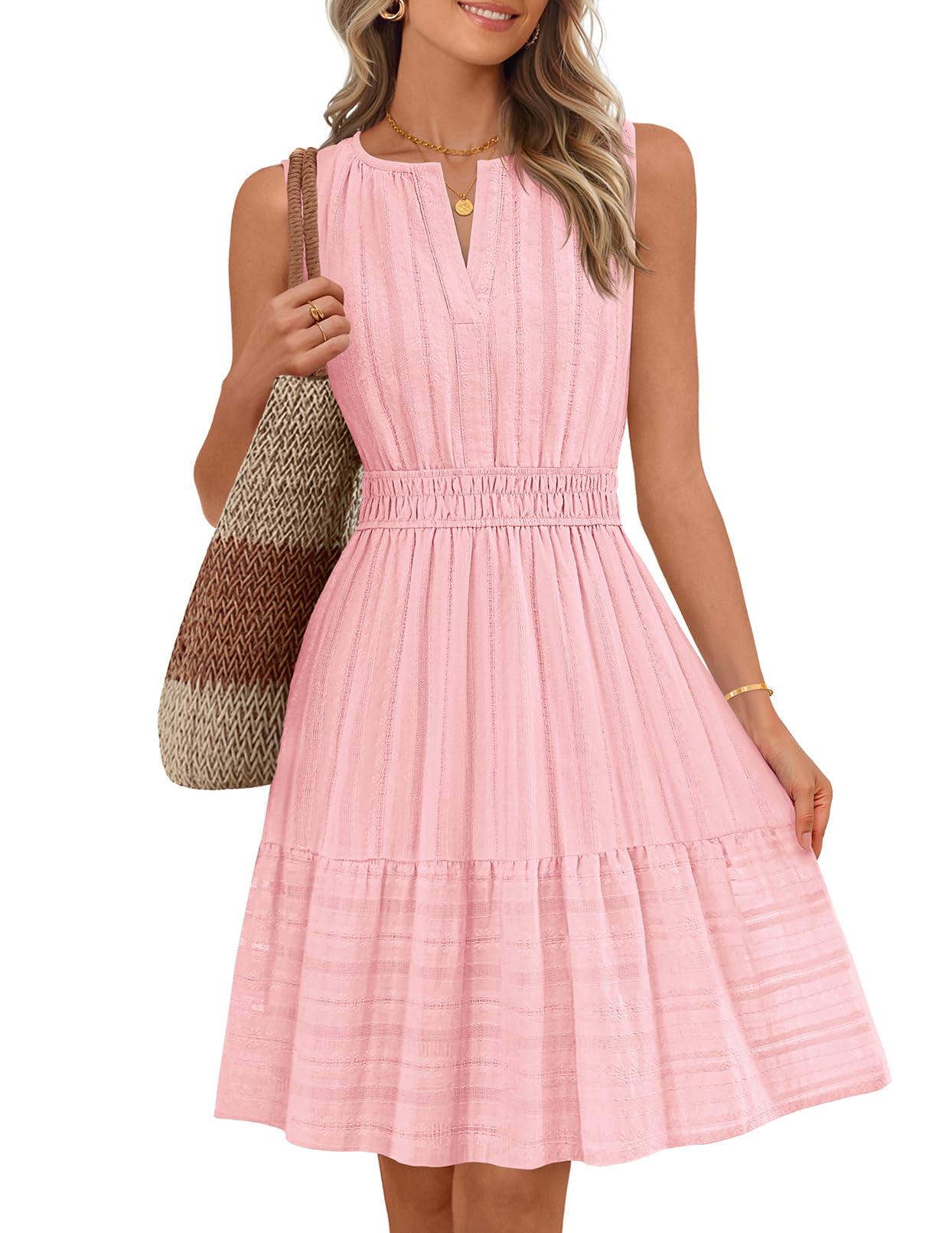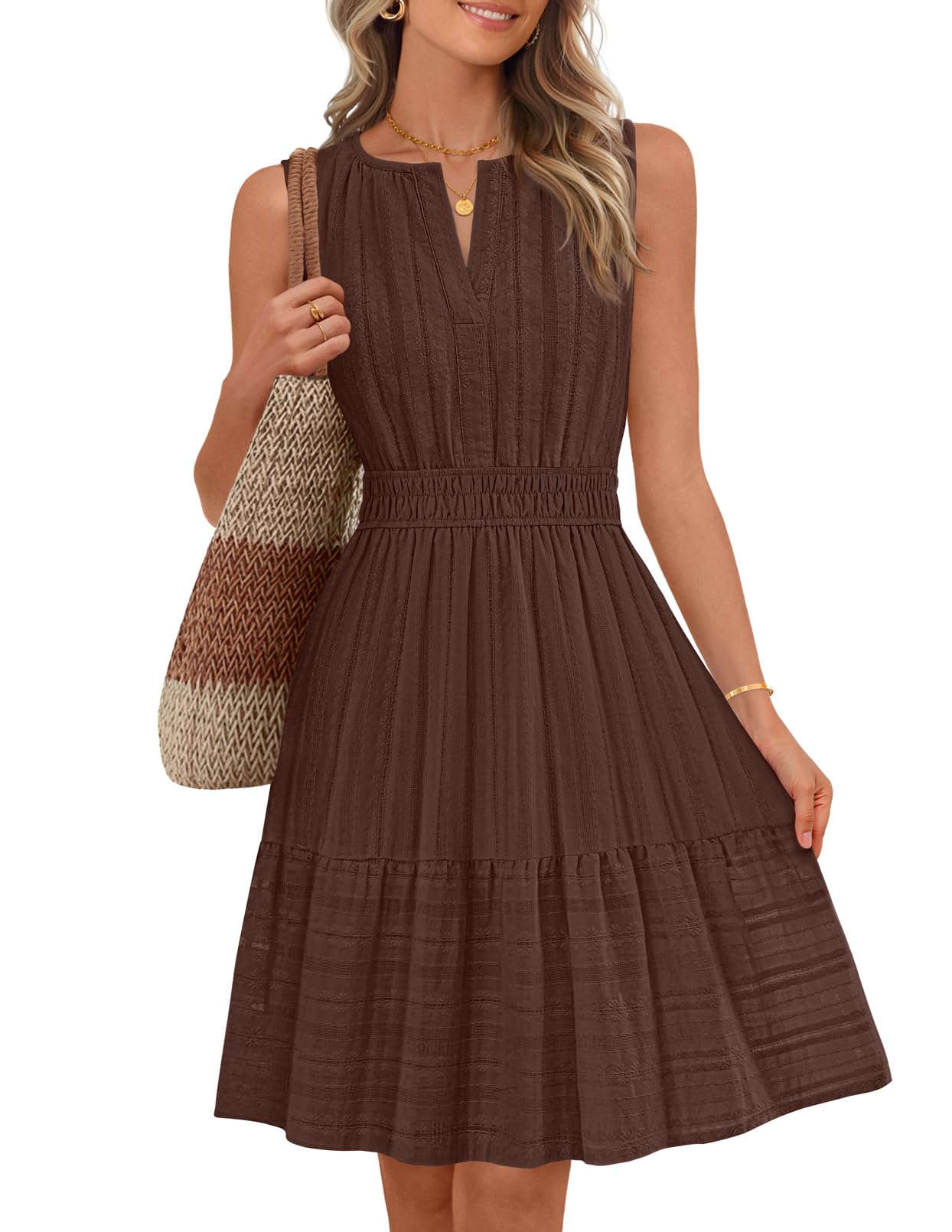 MEROKEETY Women's 2026 Summer Casual Mini Sundress Beach Vacation Sleeveless V Neck Flowy A Line Dress with Pockets