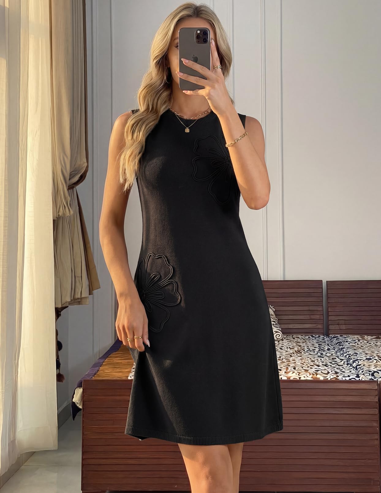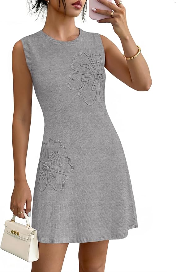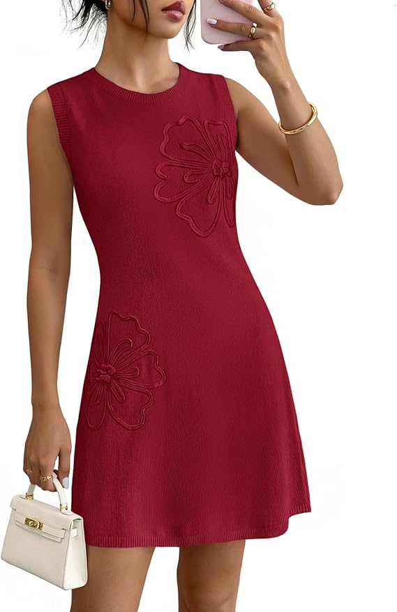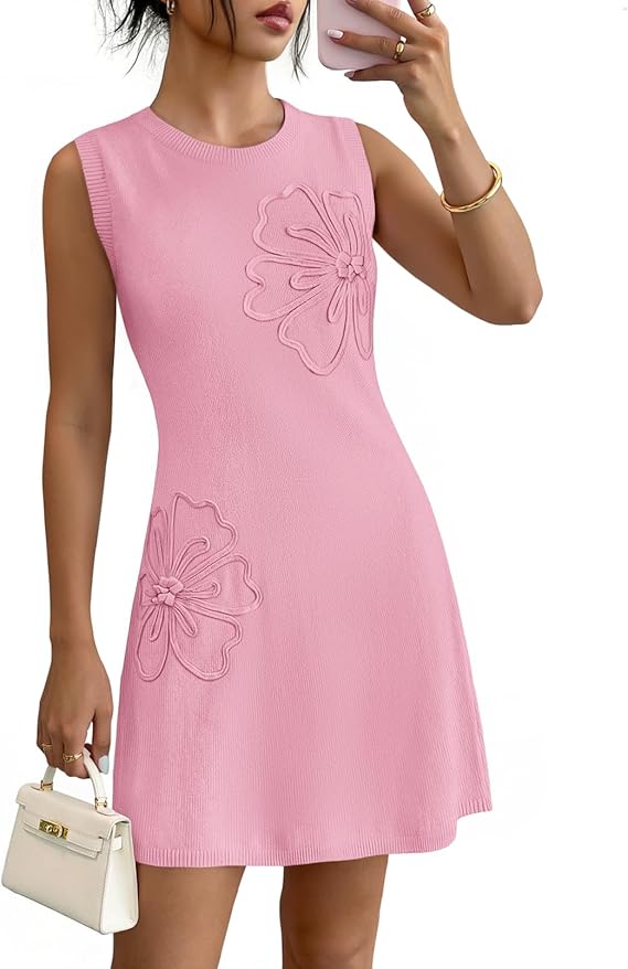 MEROKEETY Women's Cute Floral Knitted Mini Dress 2026 Spring Summer Sleeveless Tank Crew Neck A Line Short Sweater Dresses