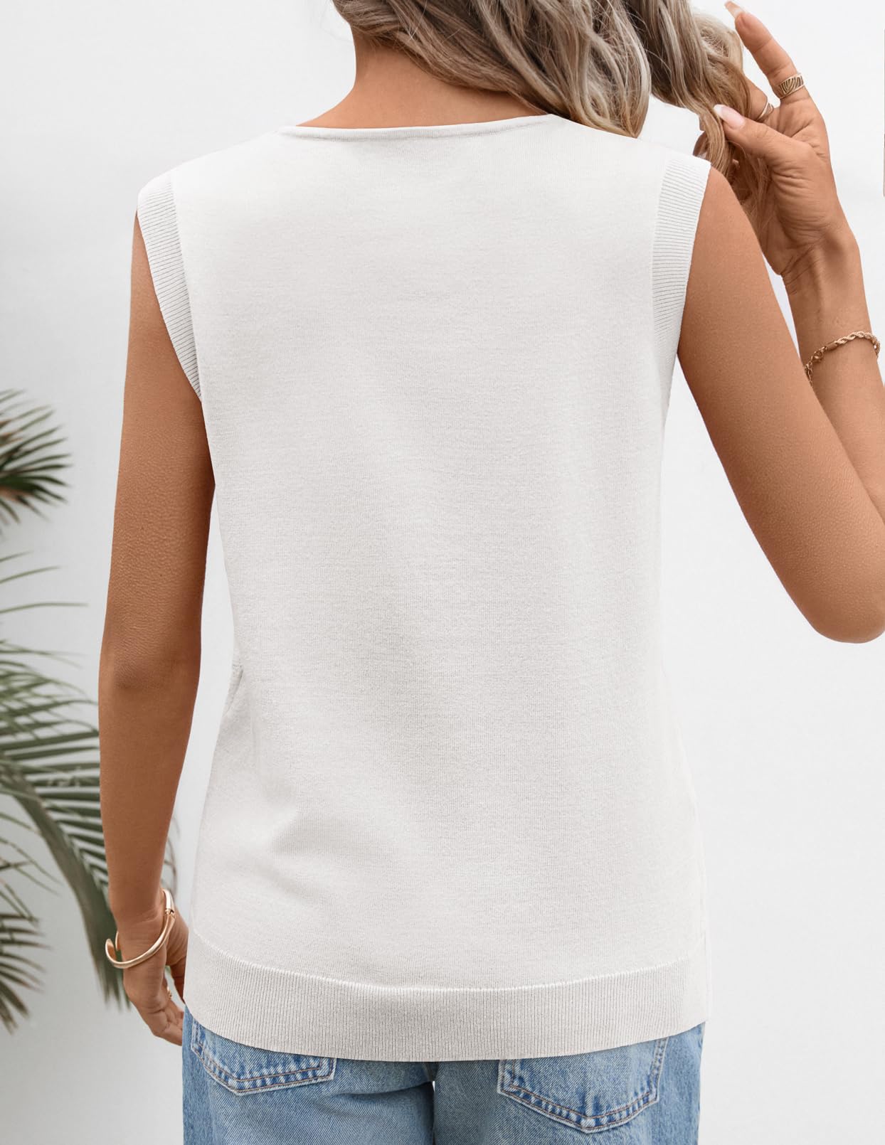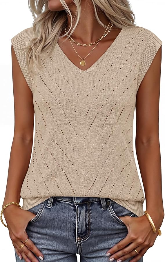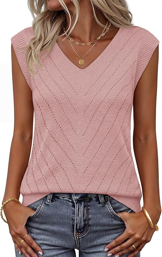 MEROKEETY Women's Summer Spring Sleeveless Tank Top 2026 V Neck Knitted Sweater Vest Beach Vacation Clothes Casual Outfits