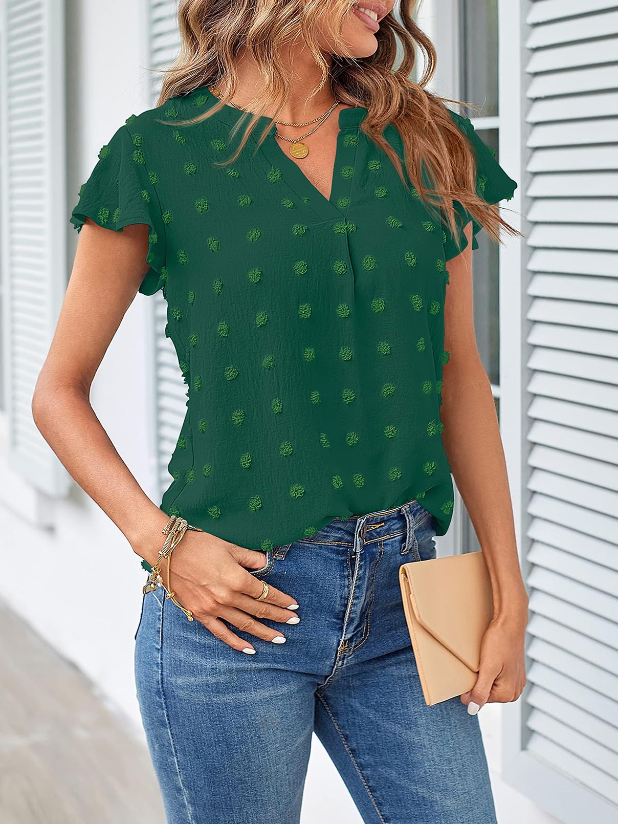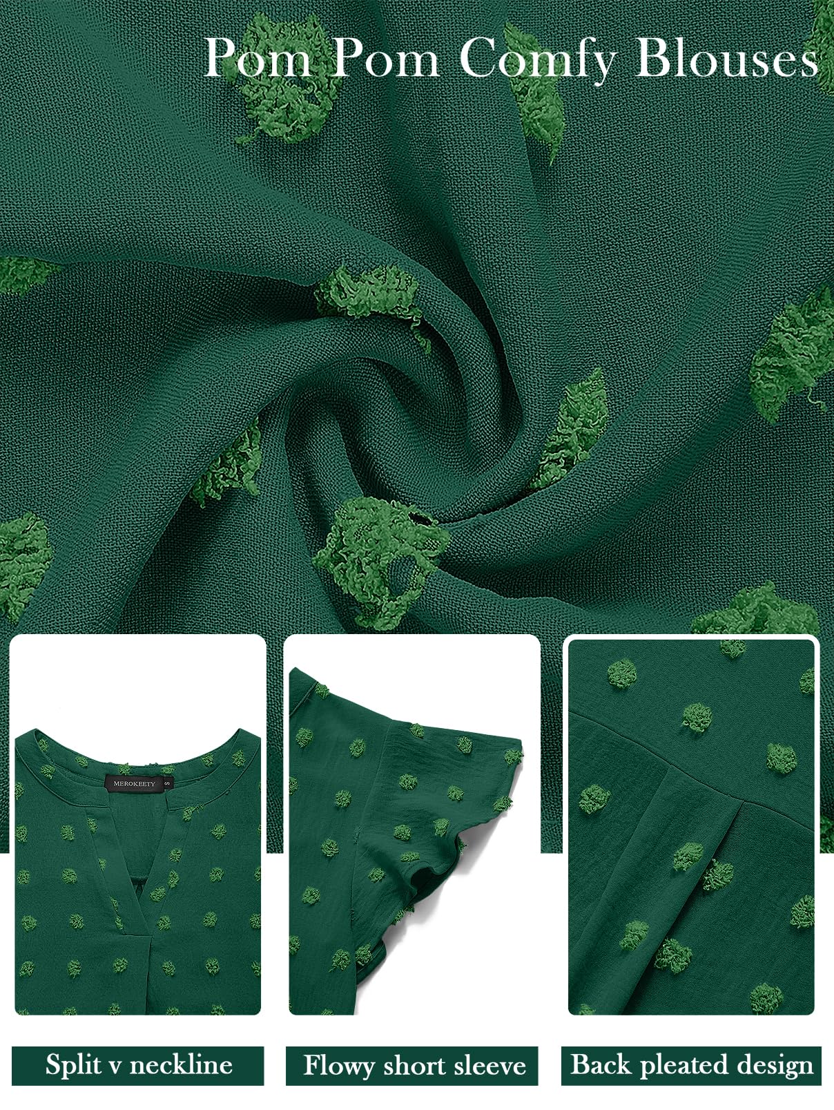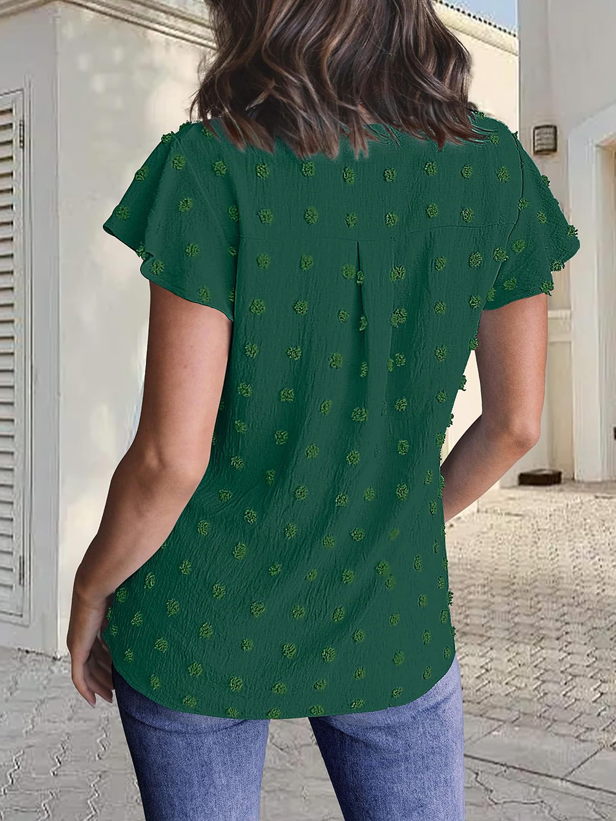 MEROKEETY Women Casual V Neck Flutter Short Sleeve Blouse Swiss Dot Loose Tunic Shirt Top