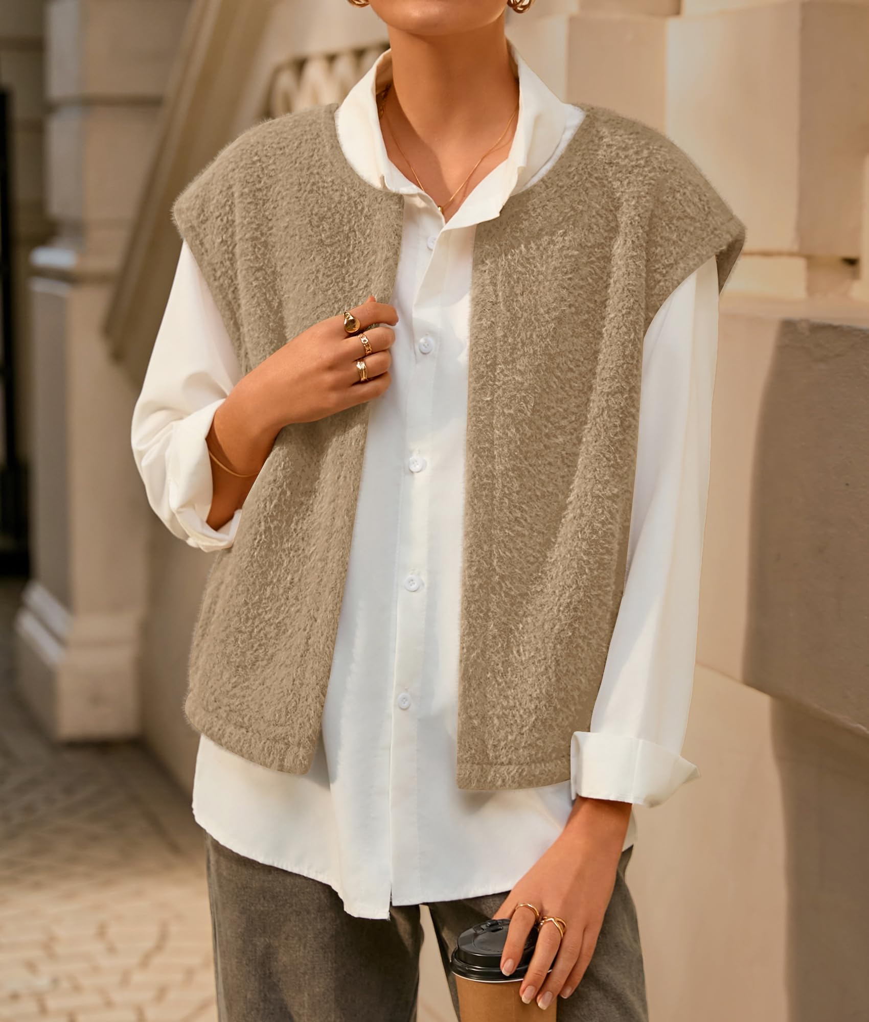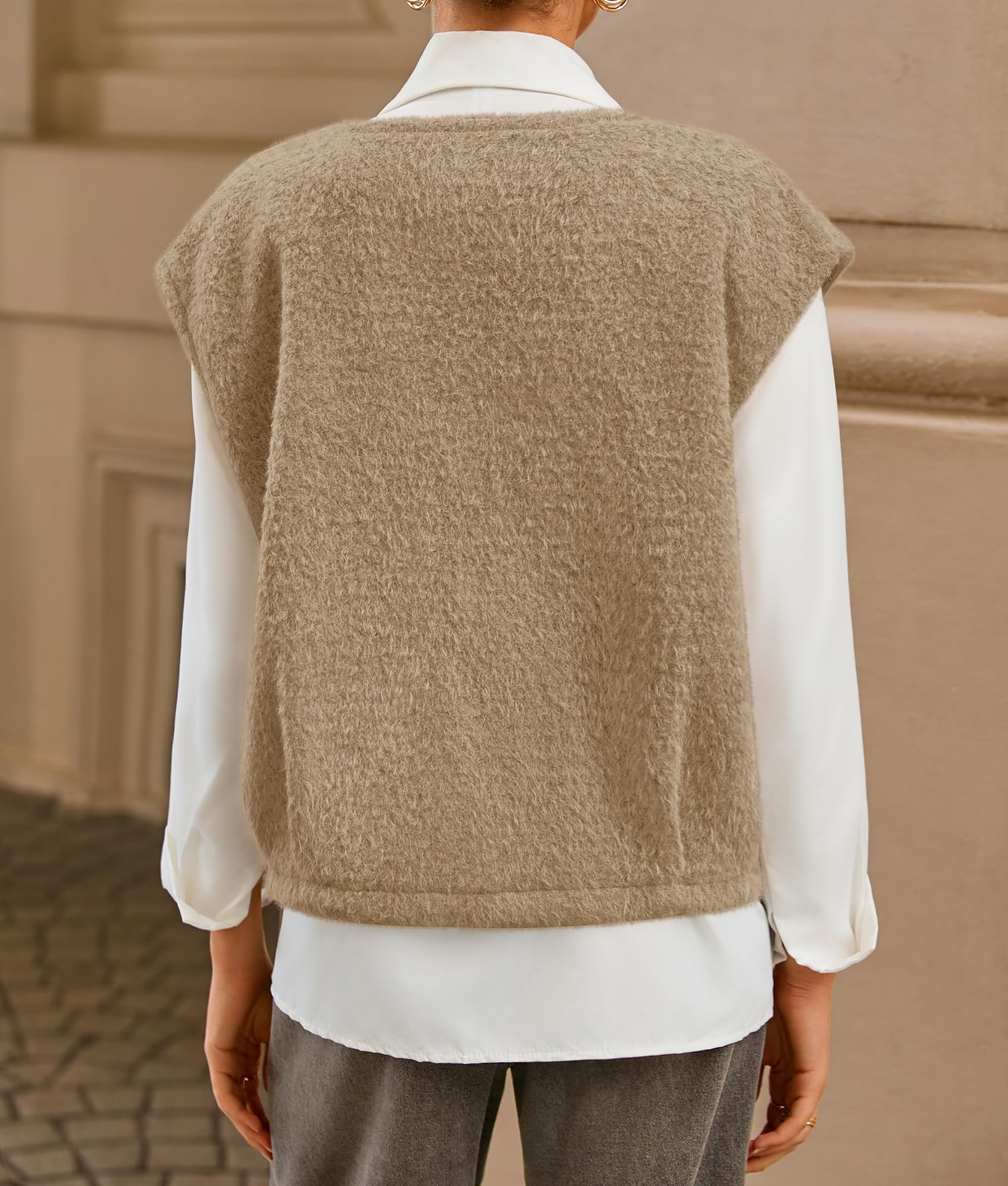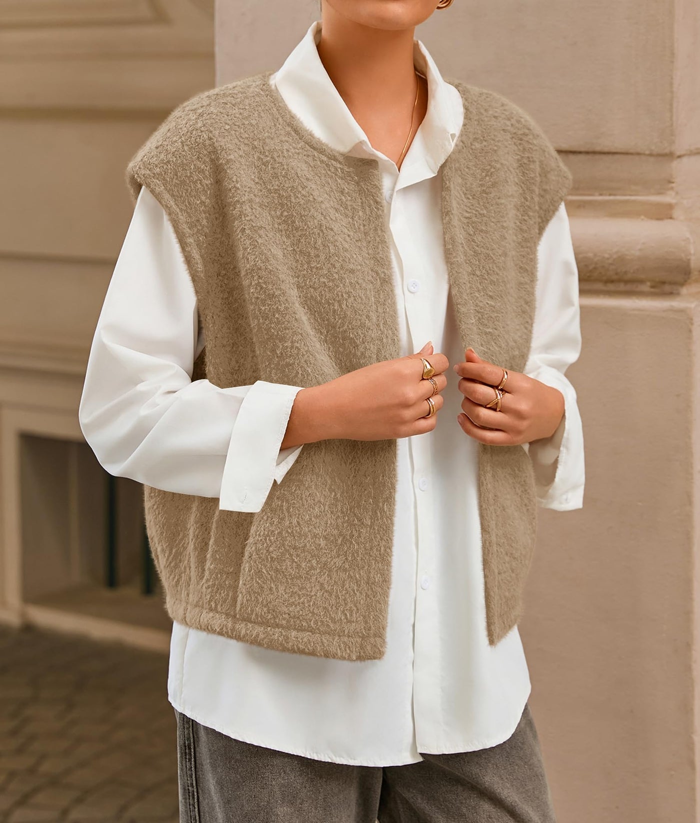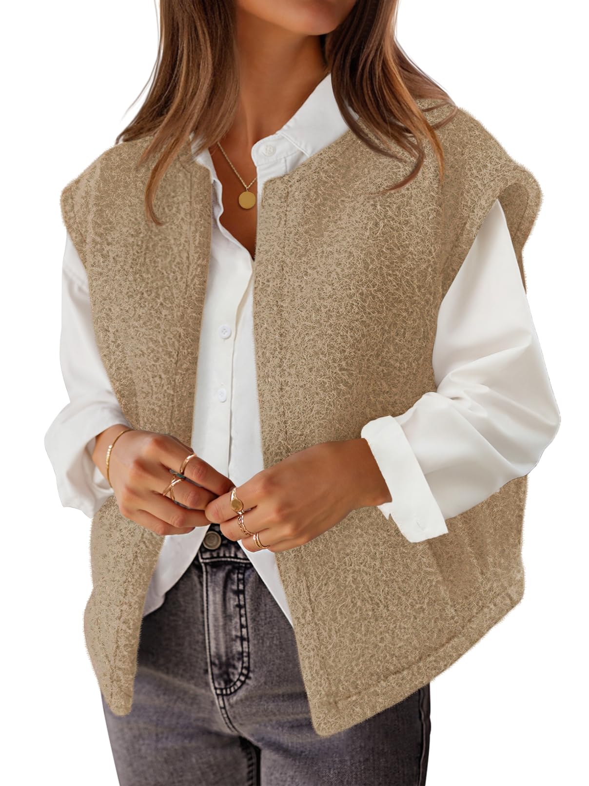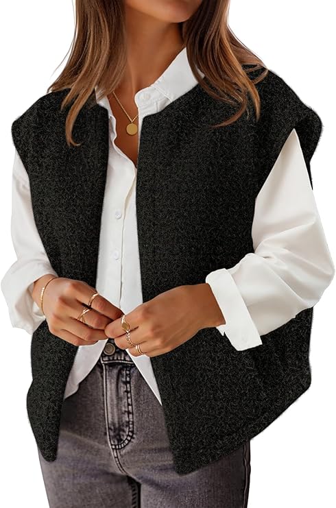 MEROKEETY Womens 2025 Trendy Oversized Sherpa Fleece Lined Vest Sleeveless Winter Fuzzy Outerwear Jacket