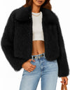 Features: The flattering open front winter coat features long sleeves, a cute fluffy collar, hook and eye, cropped length, hidden handy pockets, solid color, relaxed fit, faux fur jacket, chic fall outfits for women 2025, winter jackets for women casual