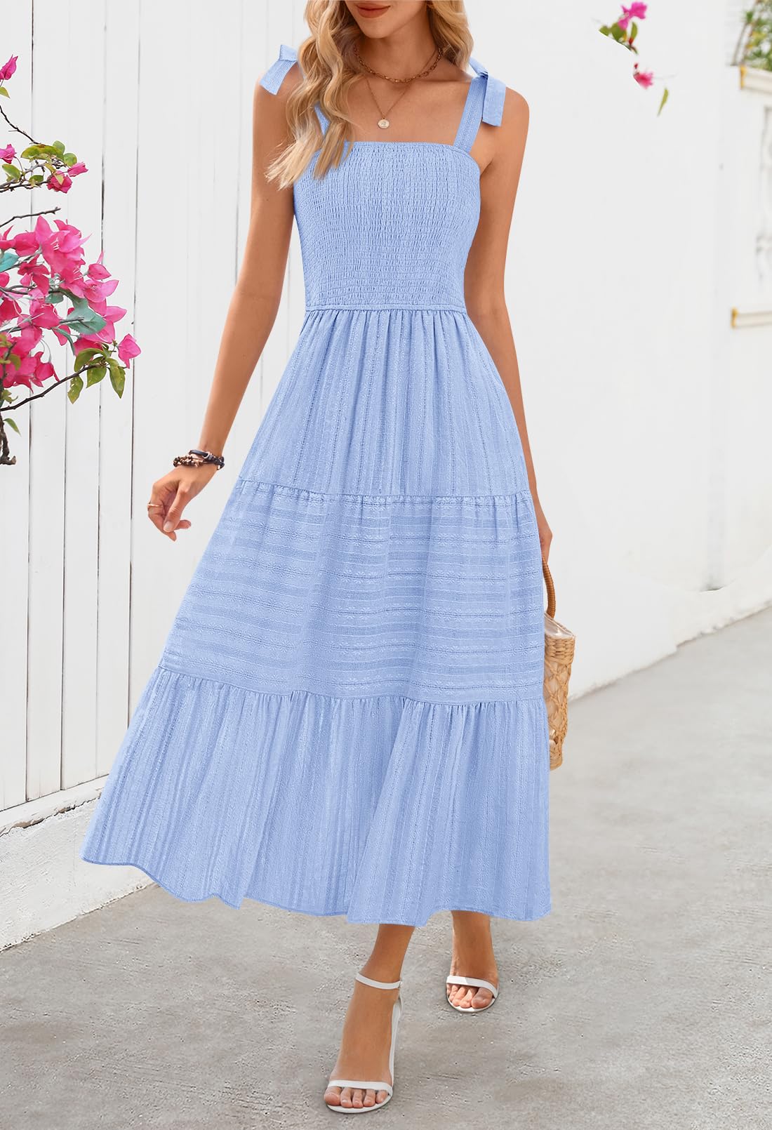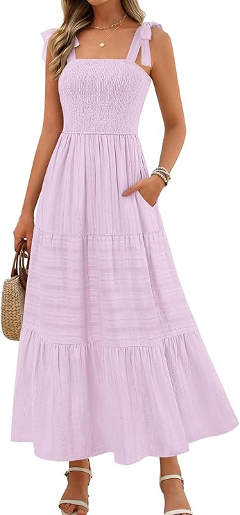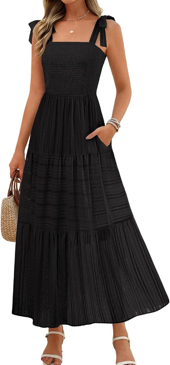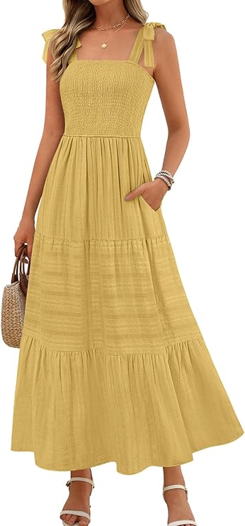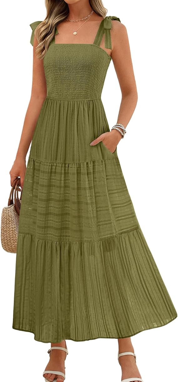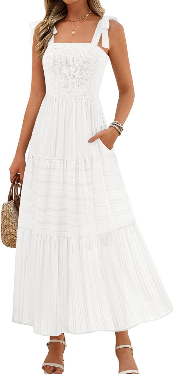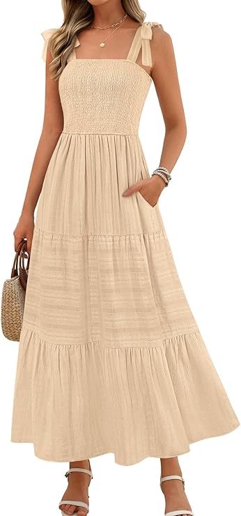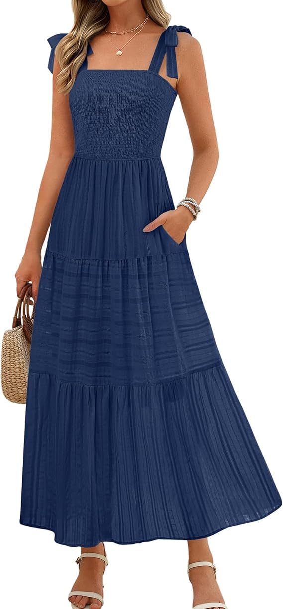 MEROKEETY Women's 2026 Spring Boho Maxi Dress Summer Beach Vacation Casual Sleeveless Smocked A Line Sundress with Pockets