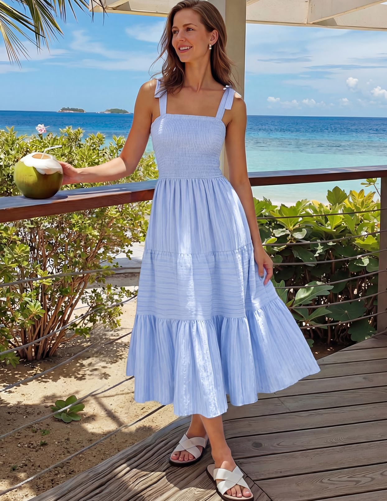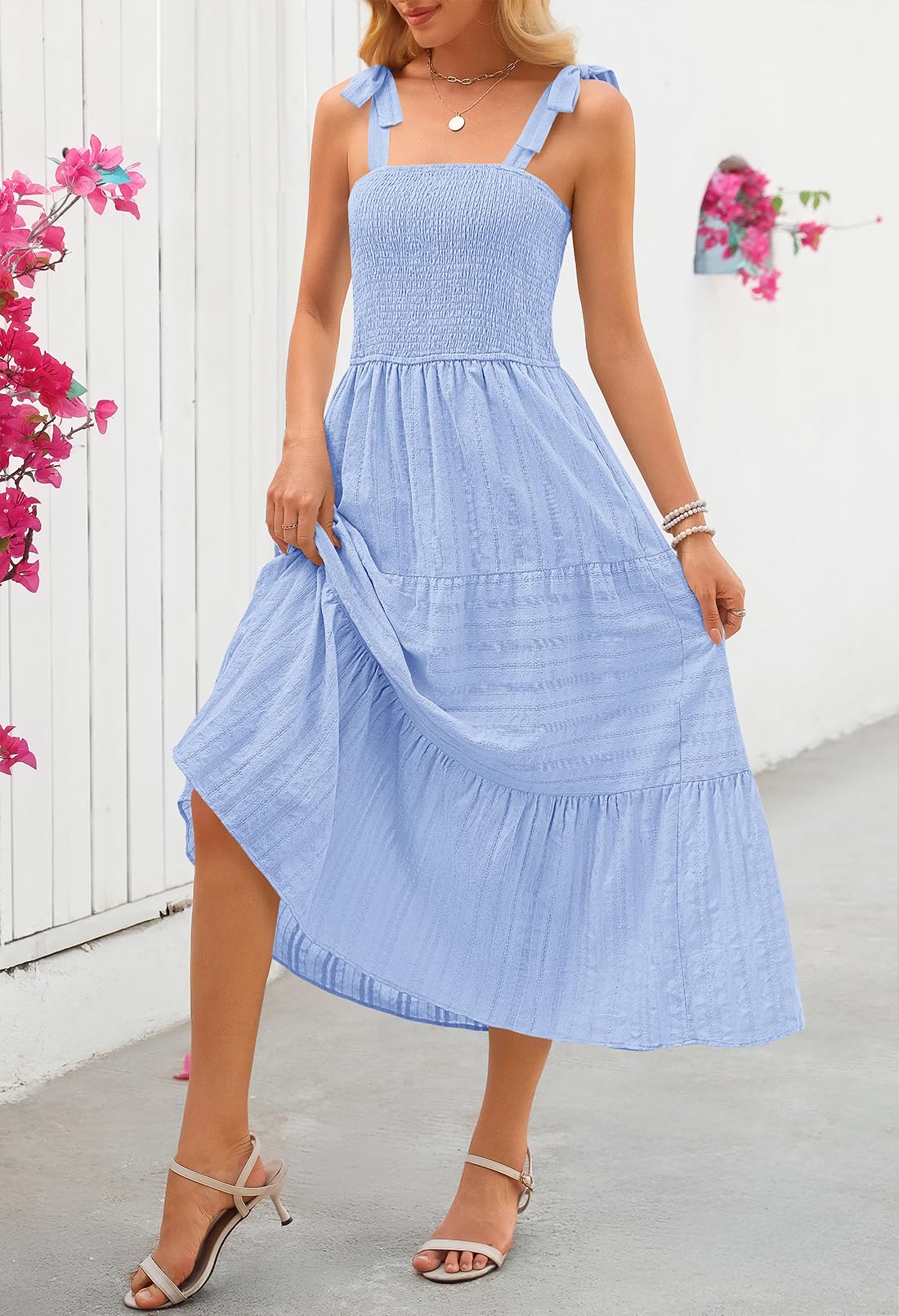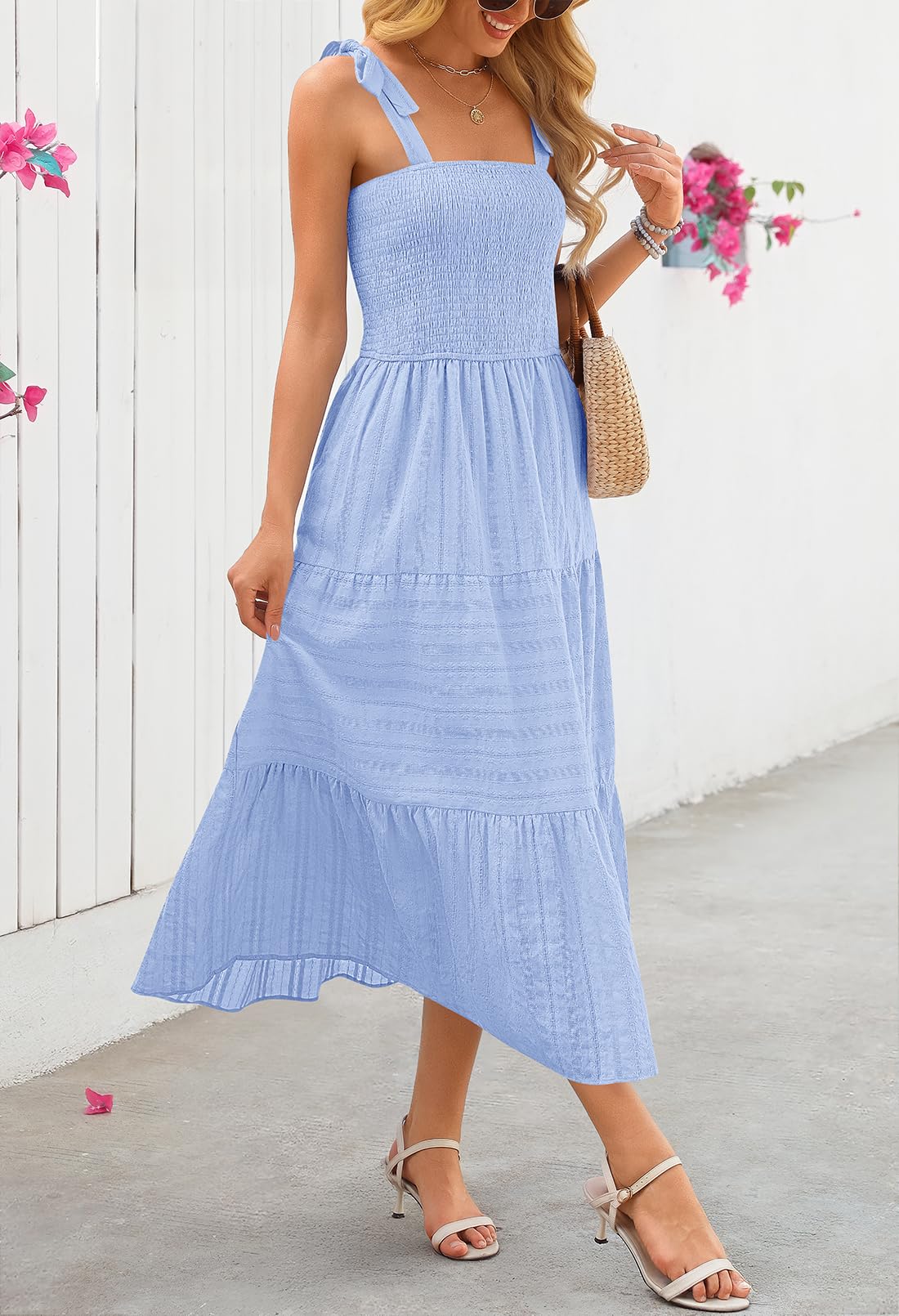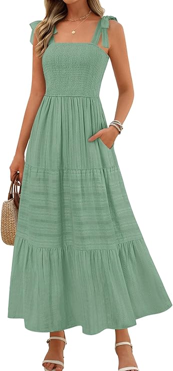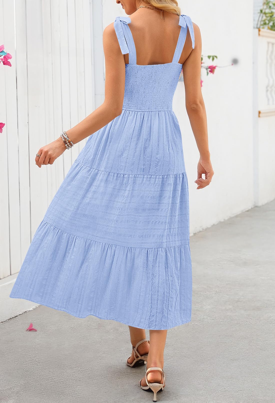 MEROKEETY Women's 2026 Spring Boho Maxi Dress Summer Beach Vacation Casual Sleeveless Smocked A Line Sundress with Pockets