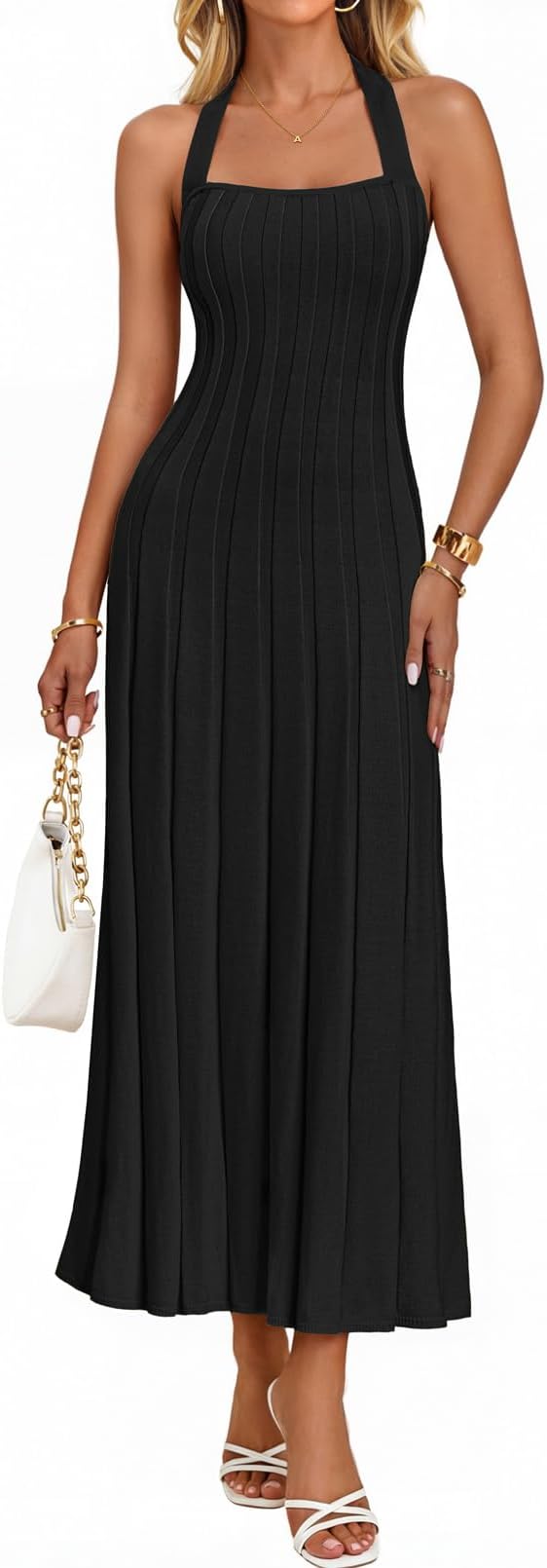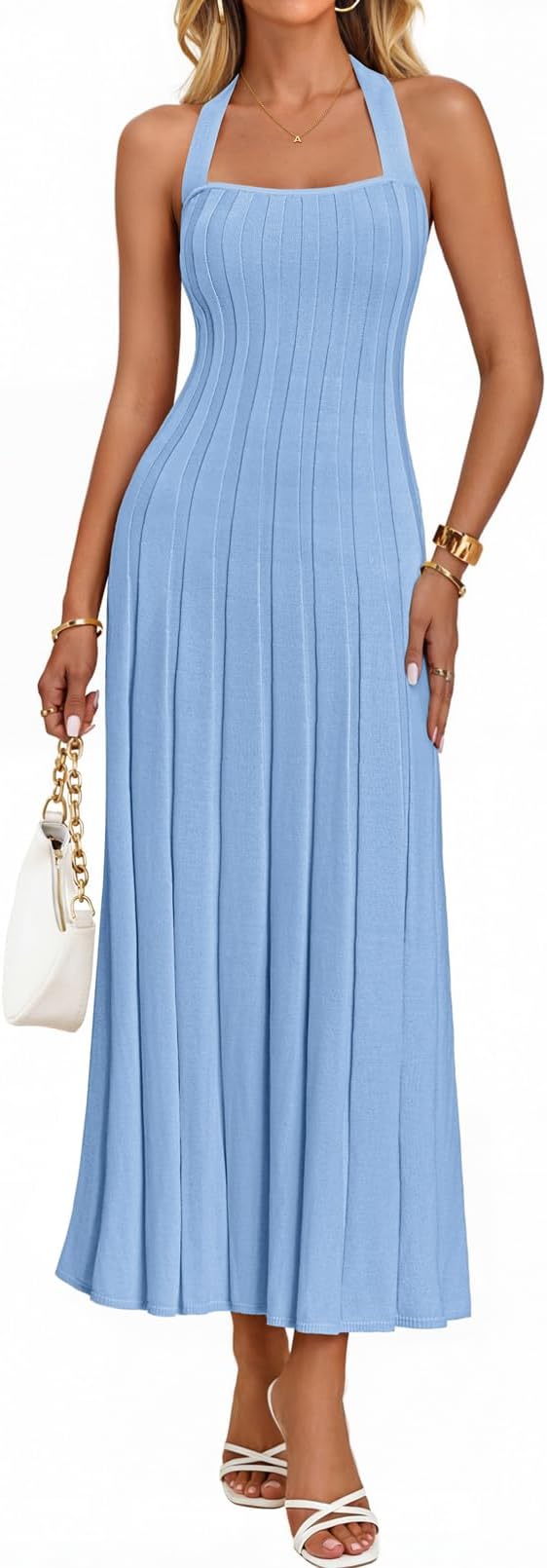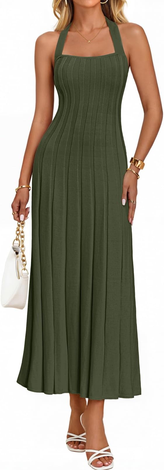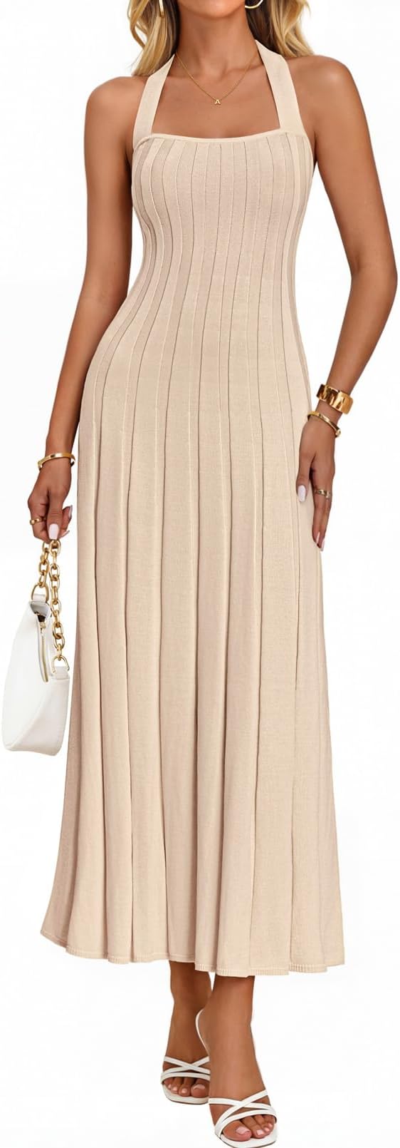MEROKEETY Women's 2026 Spring Halter Bodycon Midi Dress Casual Summer Sleeveless Elegant Ribbed Knit Sweater Dresses