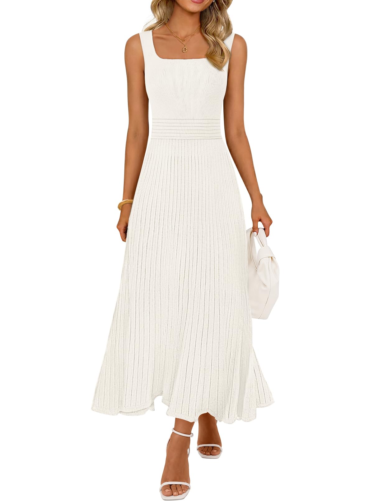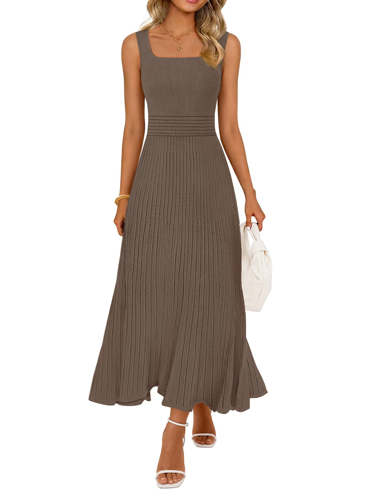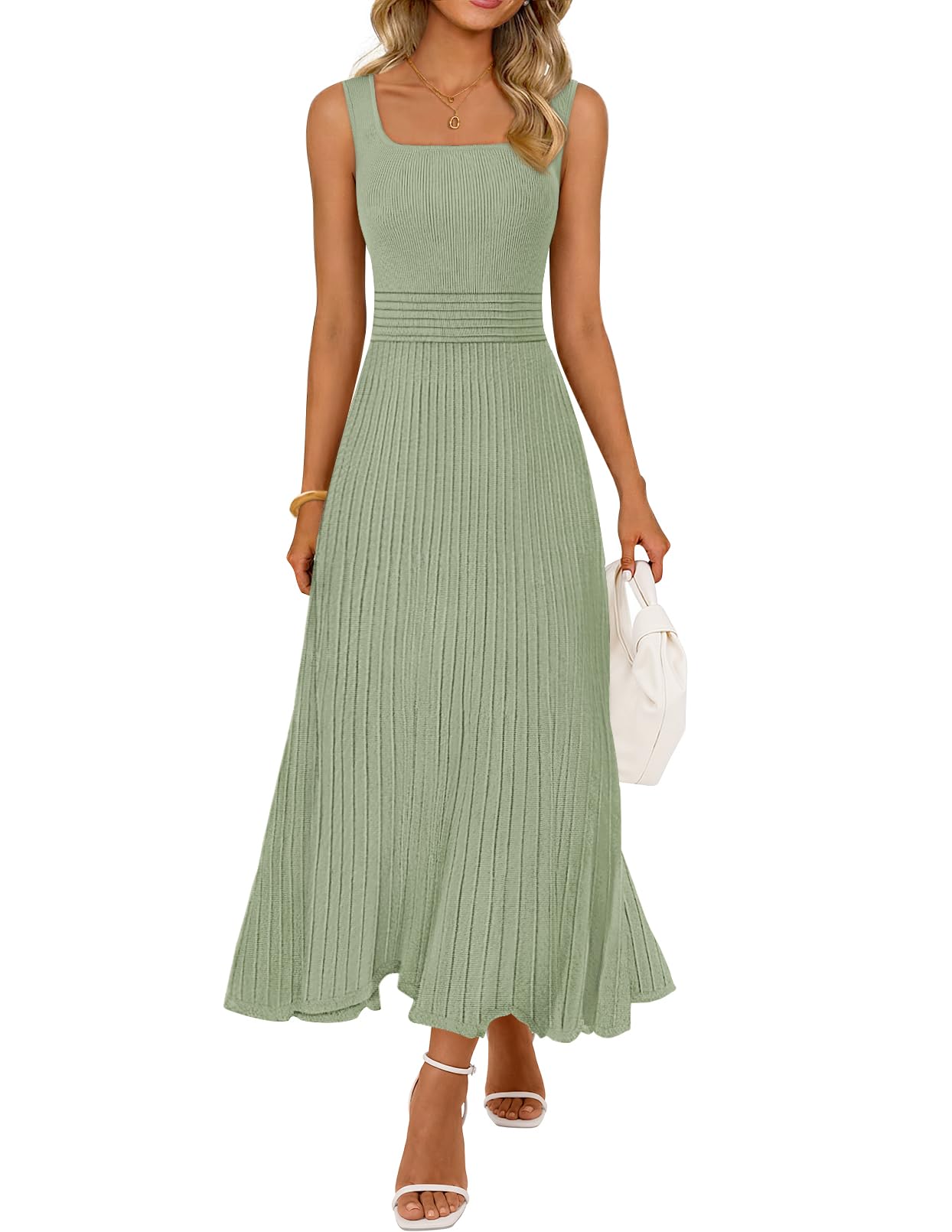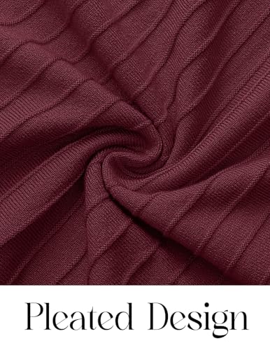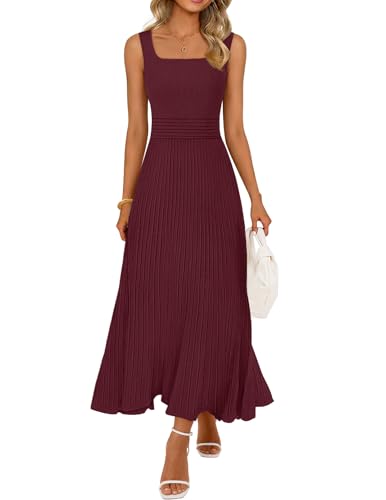 MEROKEETY Womens 2026 Summer Casual Midi Dress Square Neck Sleeveless Pleated Vacation Beach Sundress, Wine, XL