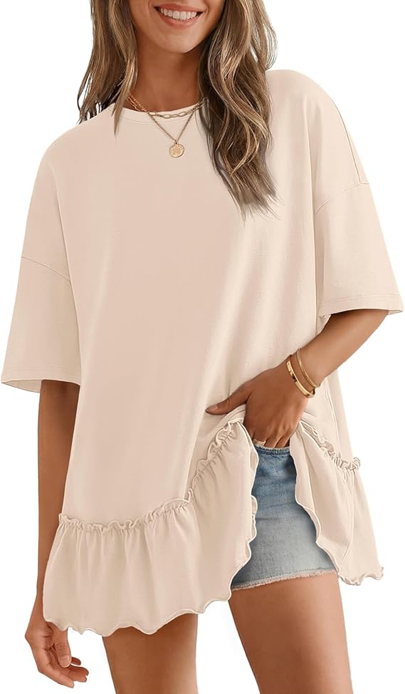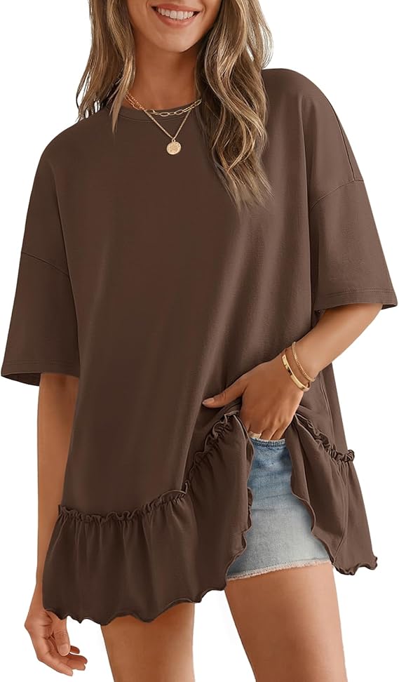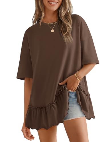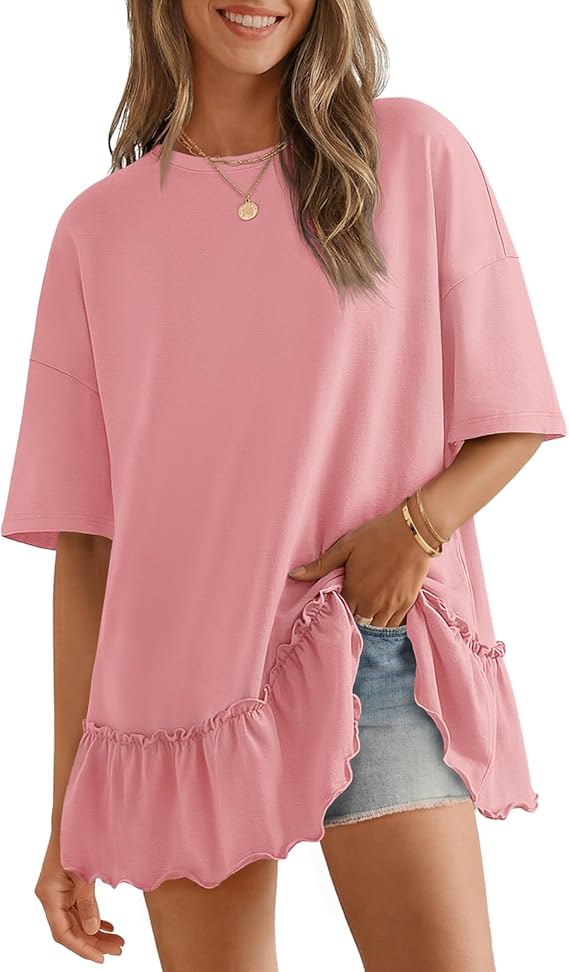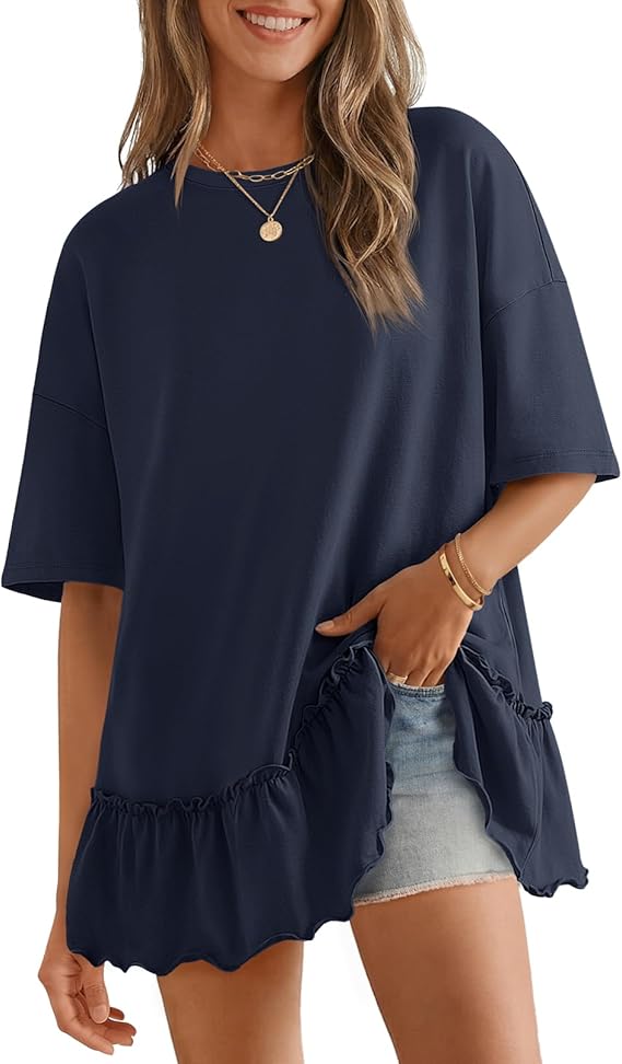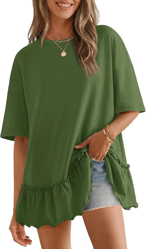 MEROKEETY Women's 2026 Summer Peplum Oversized Tops Casual Short Sleeve Crew Neck Ruffle Tunic T Shirts