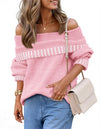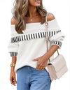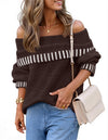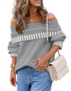 Features: The flattering jumper top features long sleeves, off-the-shoulder, striped ribbed trims and cuffs, soft heathered knit, hip length, relaxed fit, casual style. Warm sweaters for women, cozy sweaters for women, fall-winter fashion clothing 2025