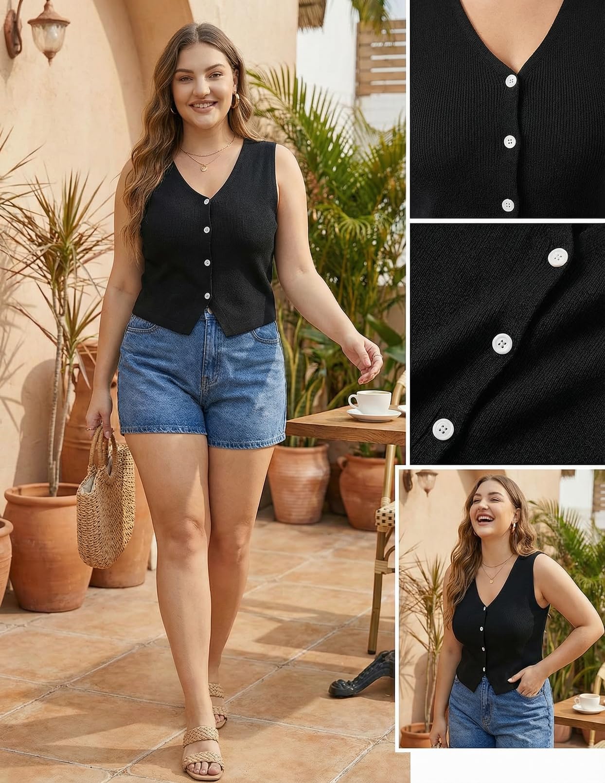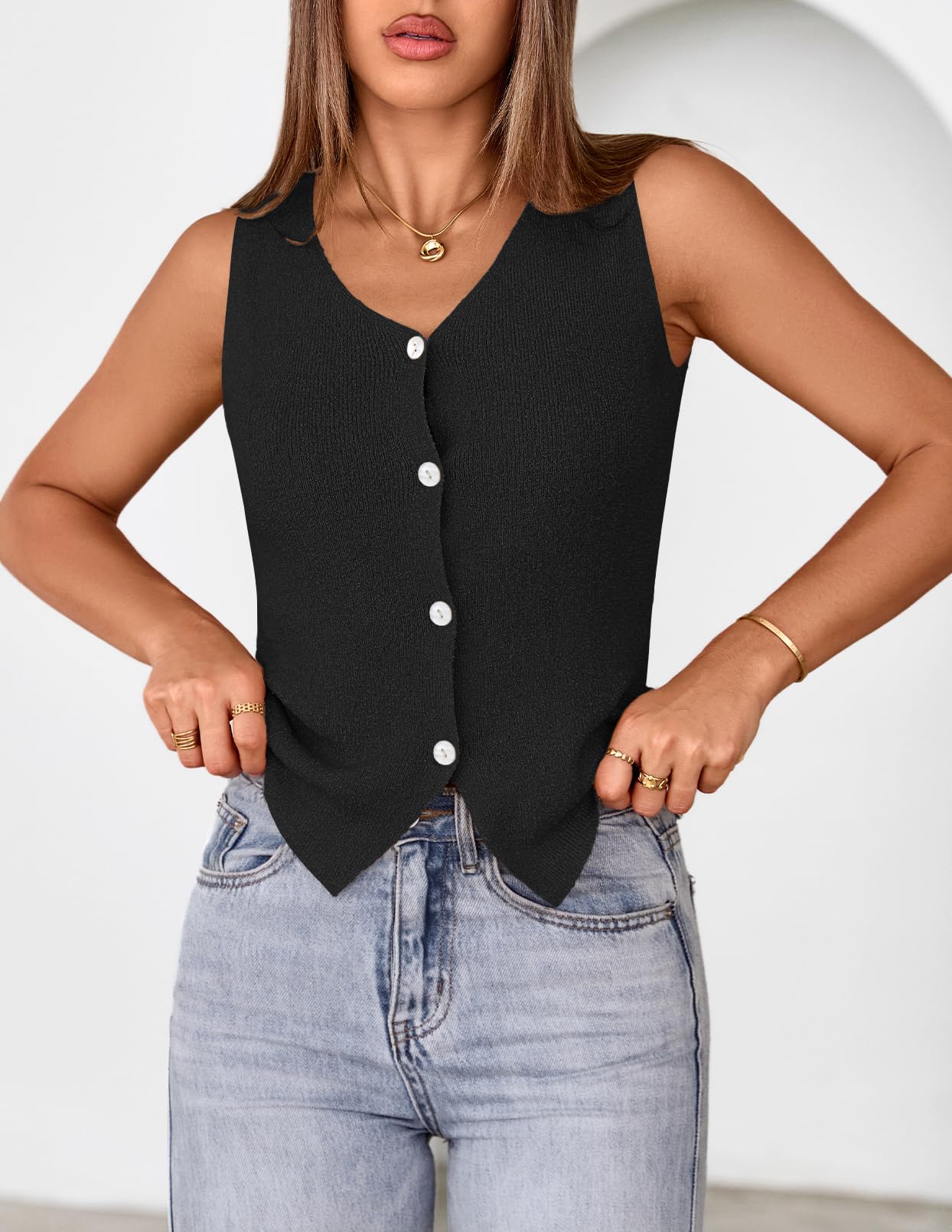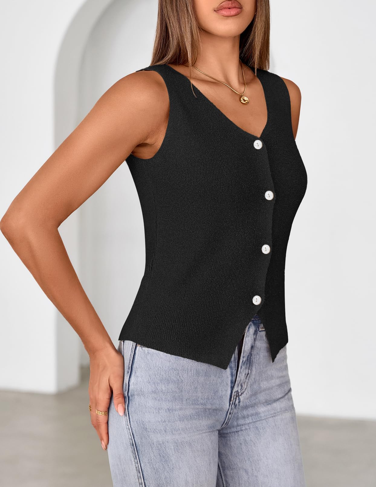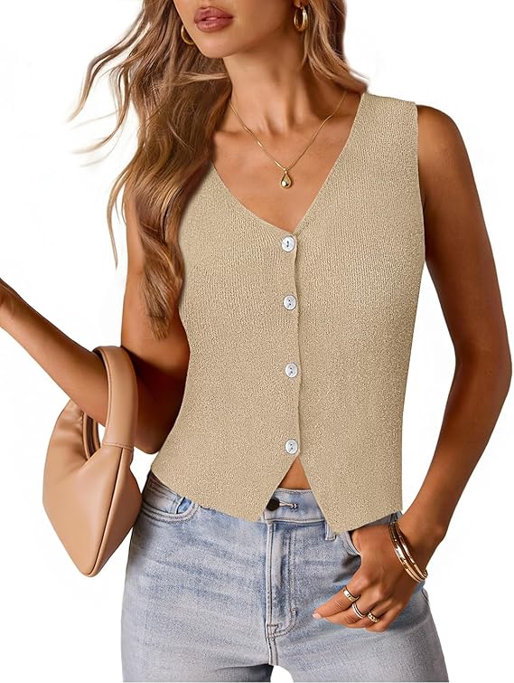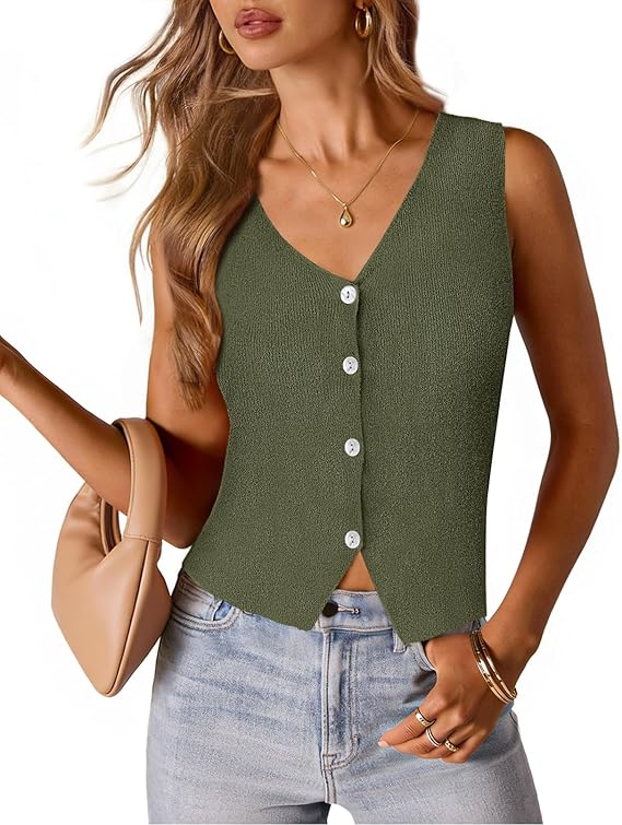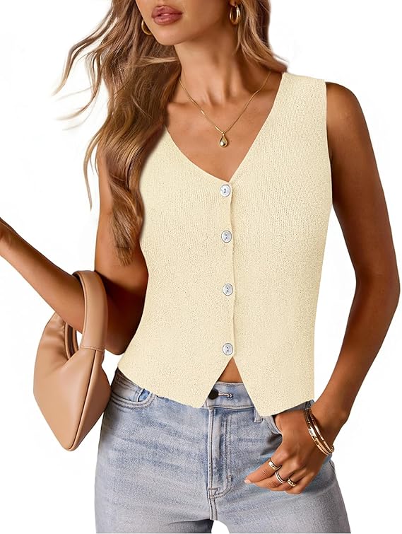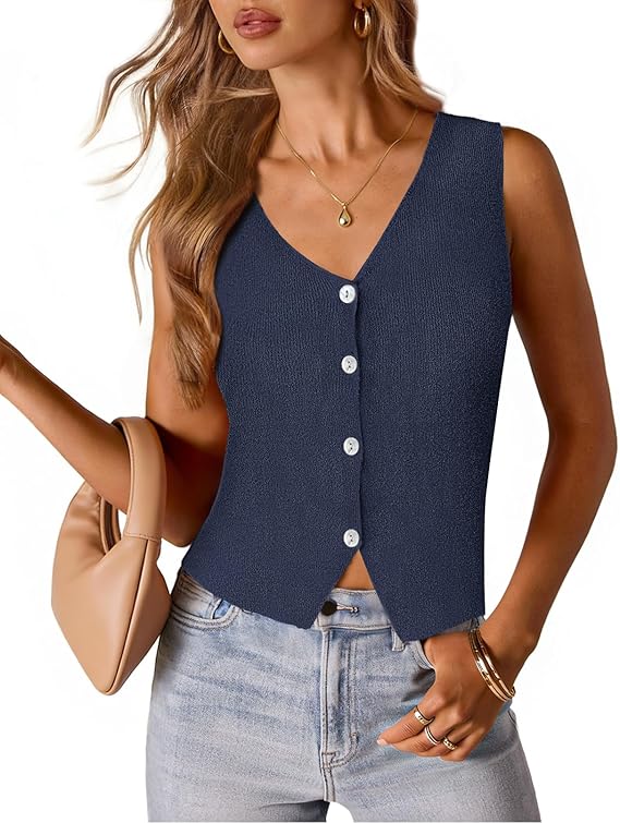 MEROKEETY Women's Sleeveless Sweater Vest 2026 Spring Summer Knit Tank Top Casual V Neck Button Waistcoat Cardigan