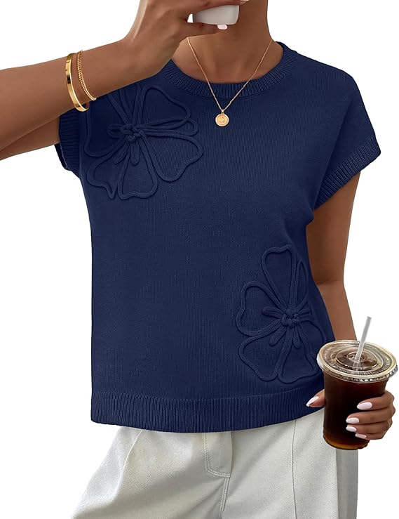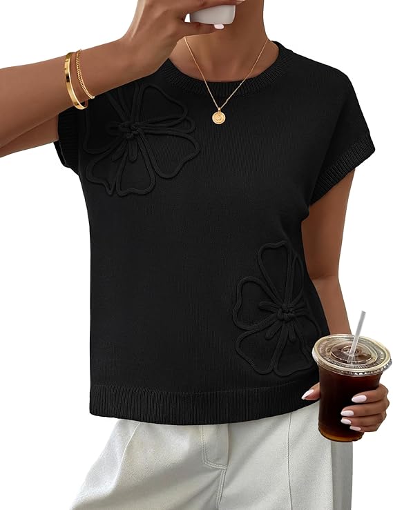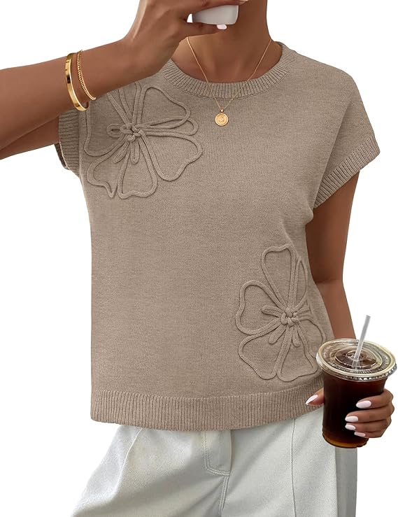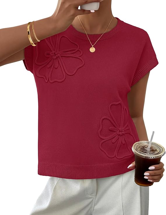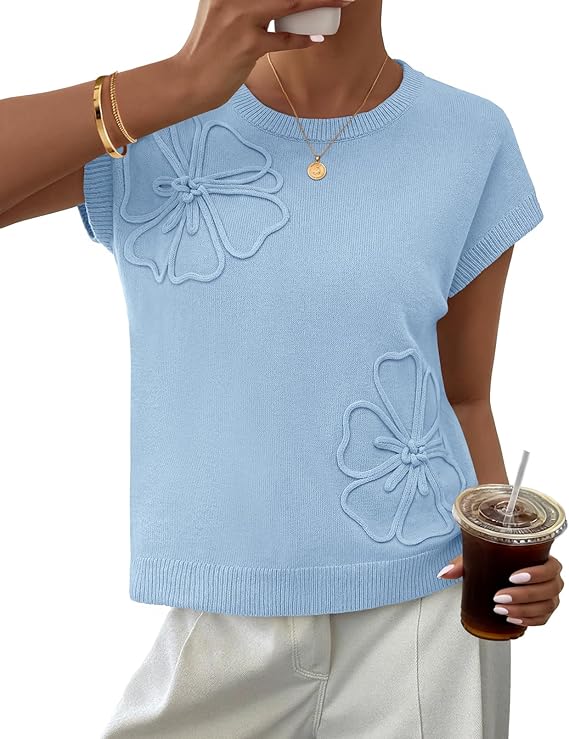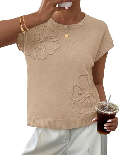 MEROKEETY Women's Spring Flower Sweater Vest Short Sleeve Knit Pullover Tank Tops 2026 Trendy Summer Cute Outfits