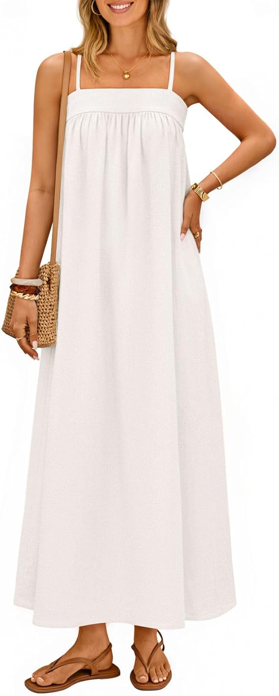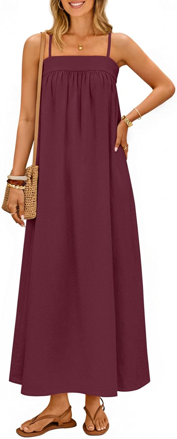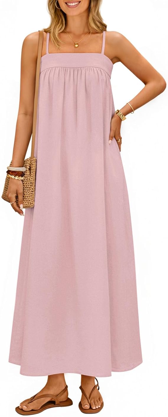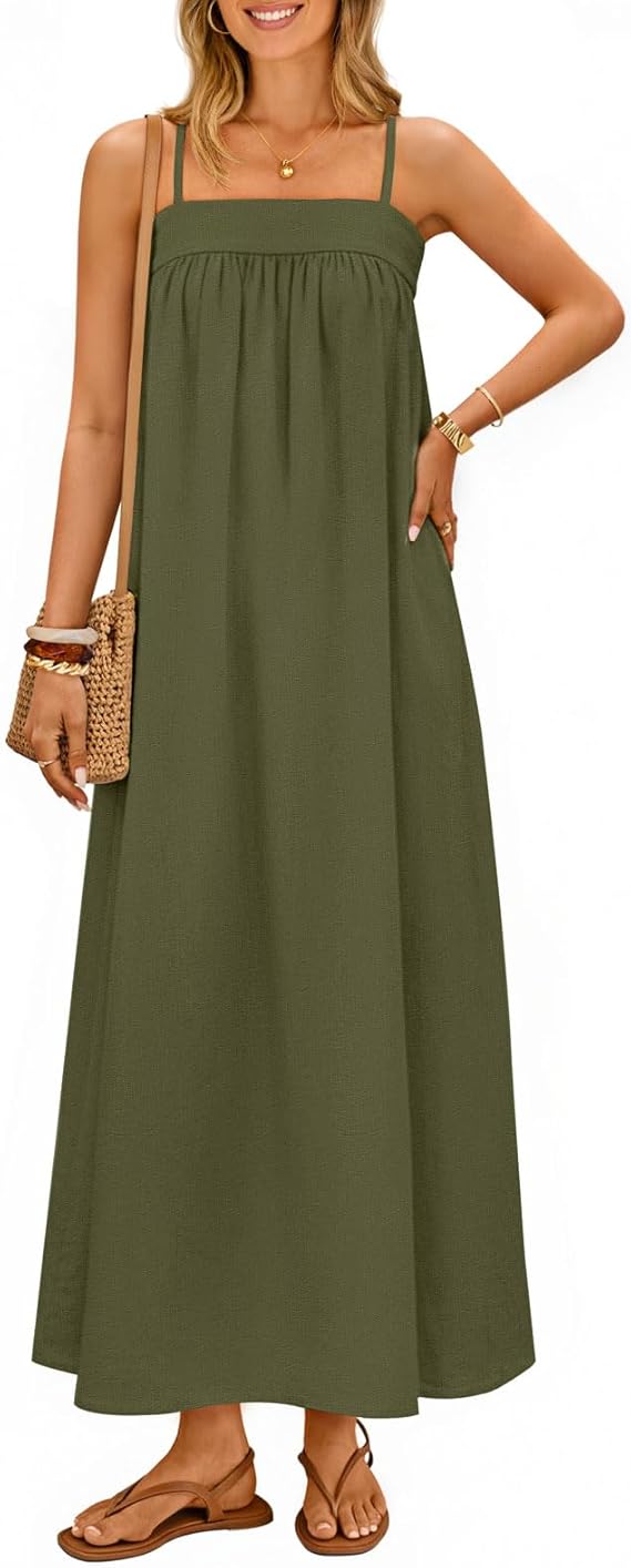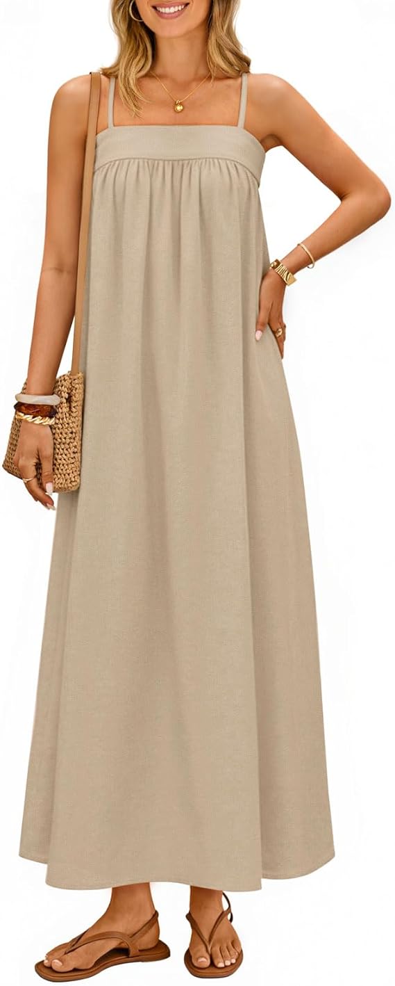 MEROKEETY Women's Summer Boho Maxi Dresses 2026 Spaghetti Straps Linen Sundress Casual Beach Vacation Long Dresses
