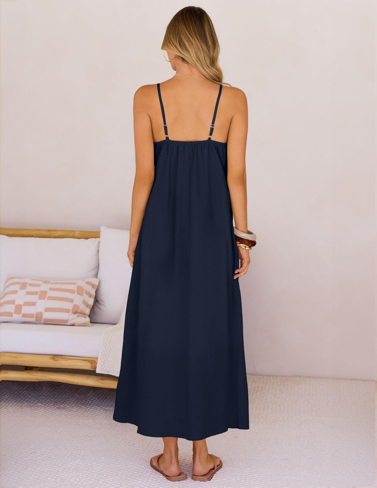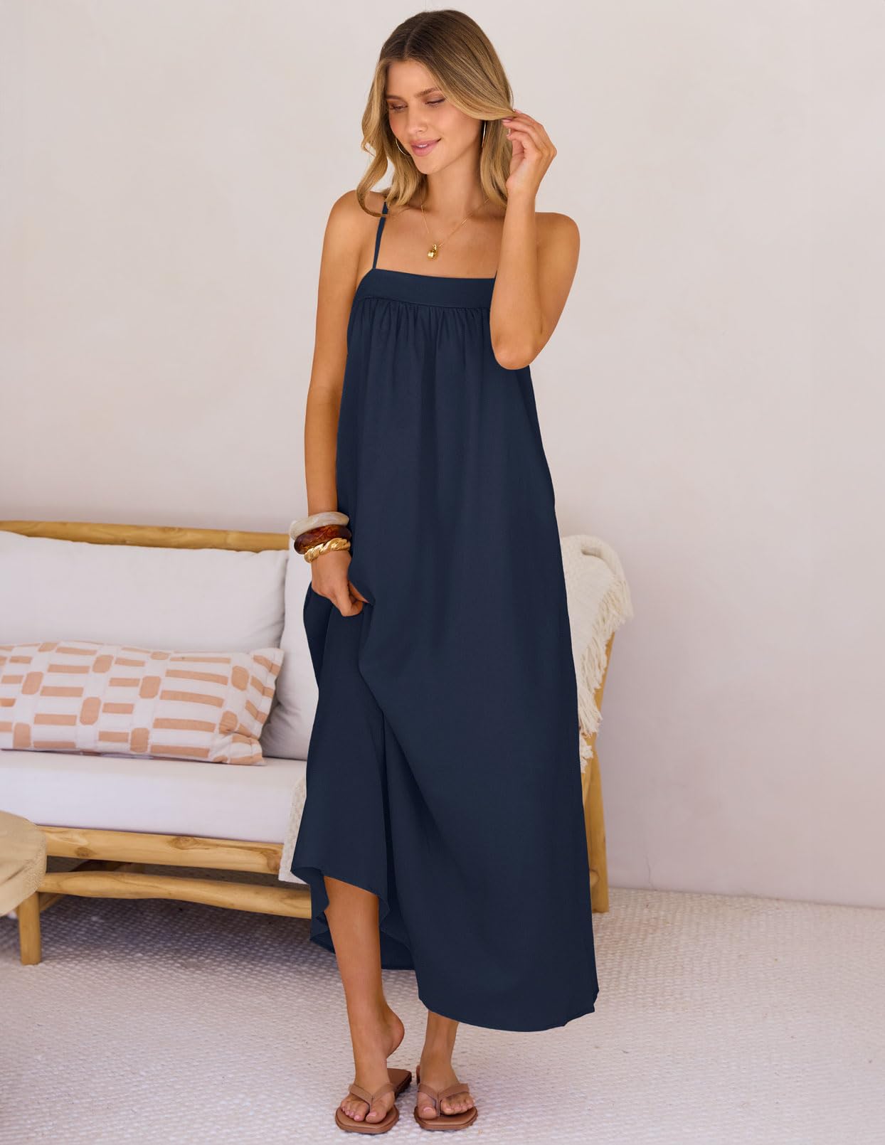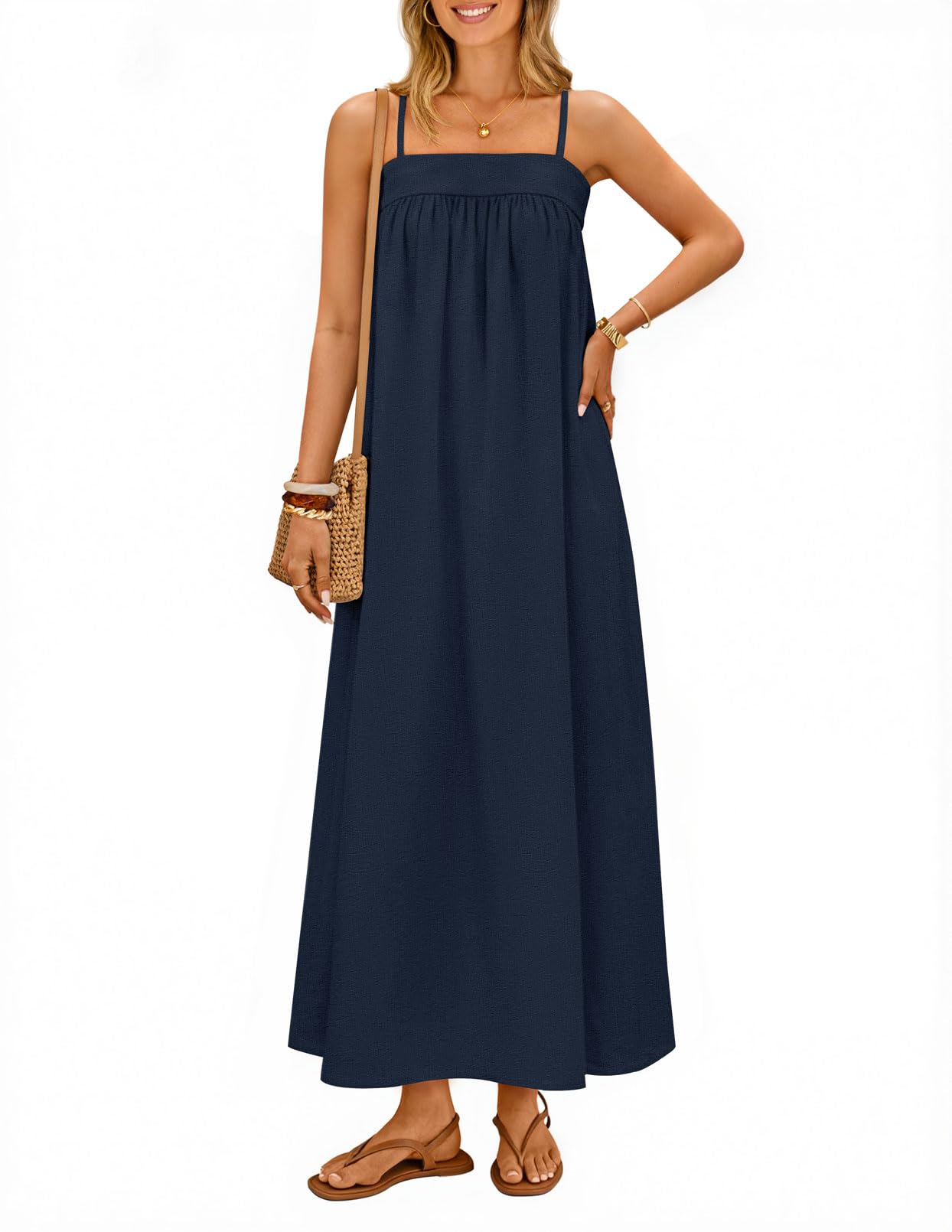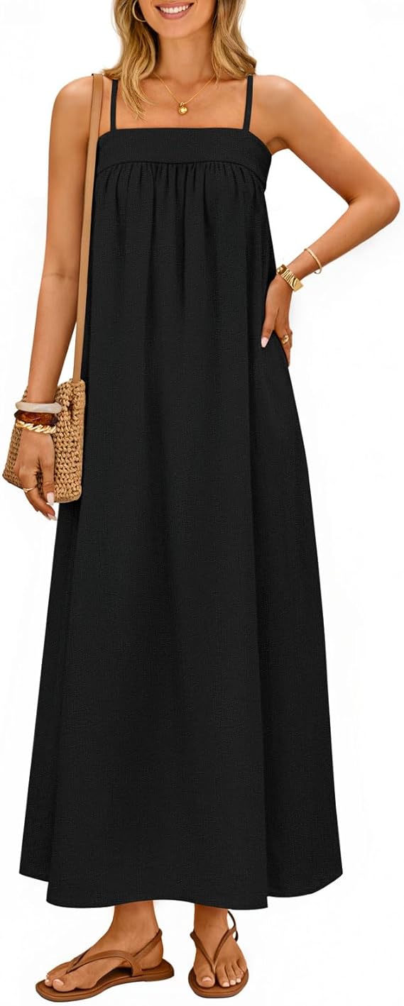 MEROKEETY Women's Summer Boho Maxi Dresses 2026 Spaghetti Straps Linen Sundress Casual Beach Vacation Long Dresses