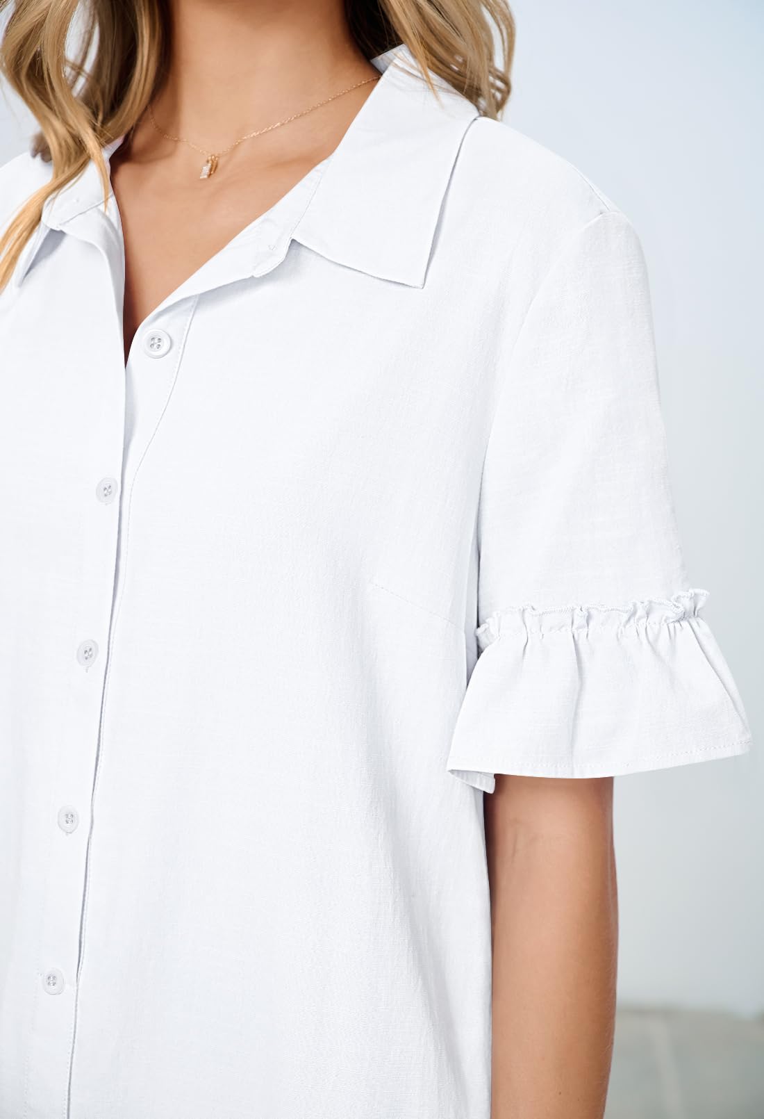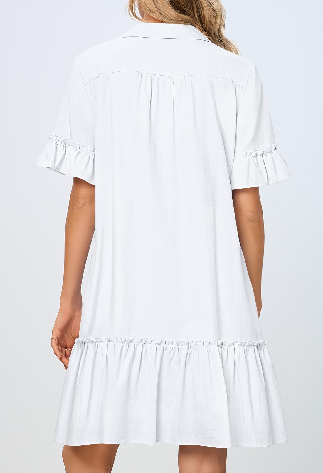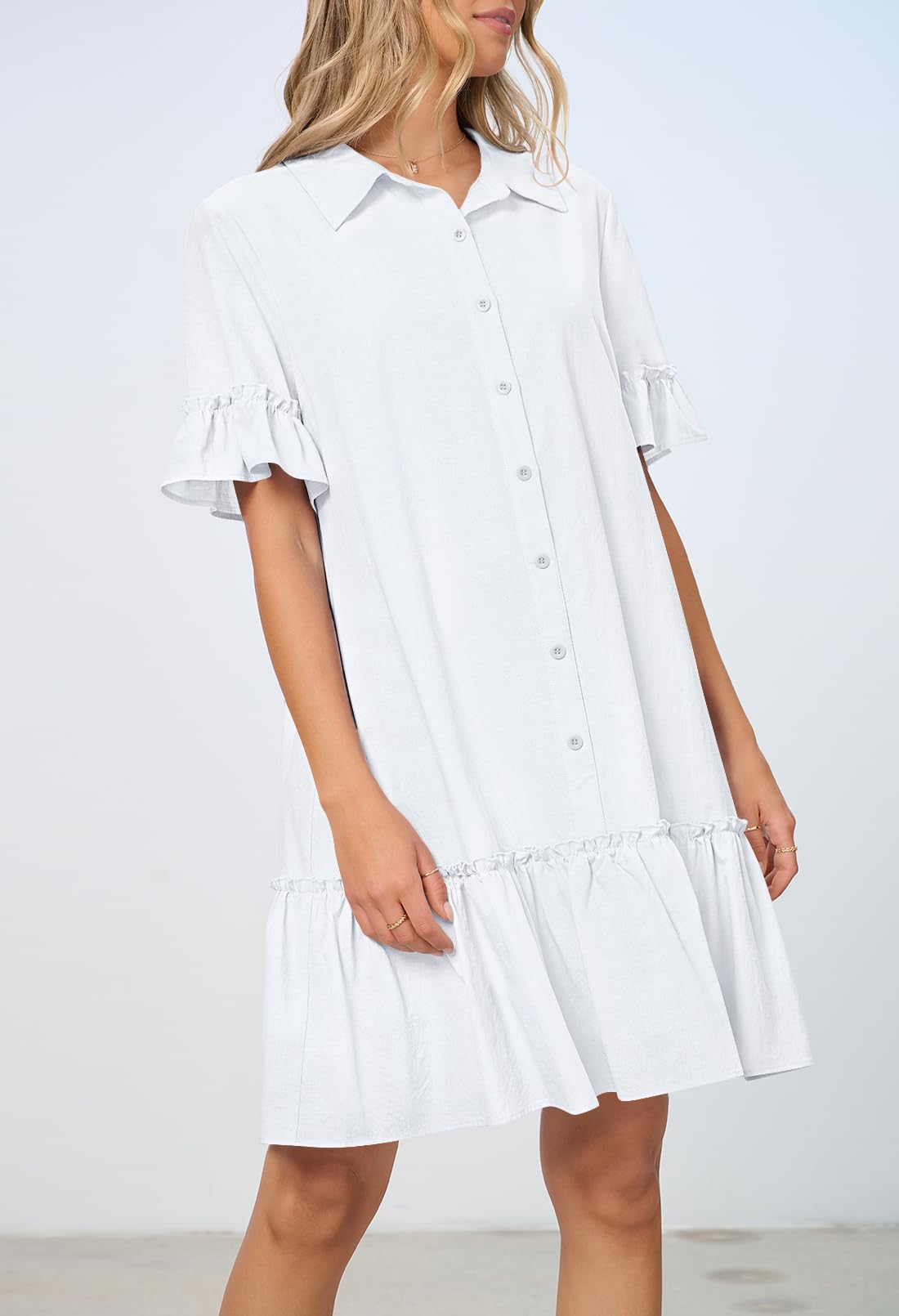 MEROKEETY Women's Summer Button Down Shirt Dress Casual Ruffle Sleeve Shift Mini Dresses with Pockets