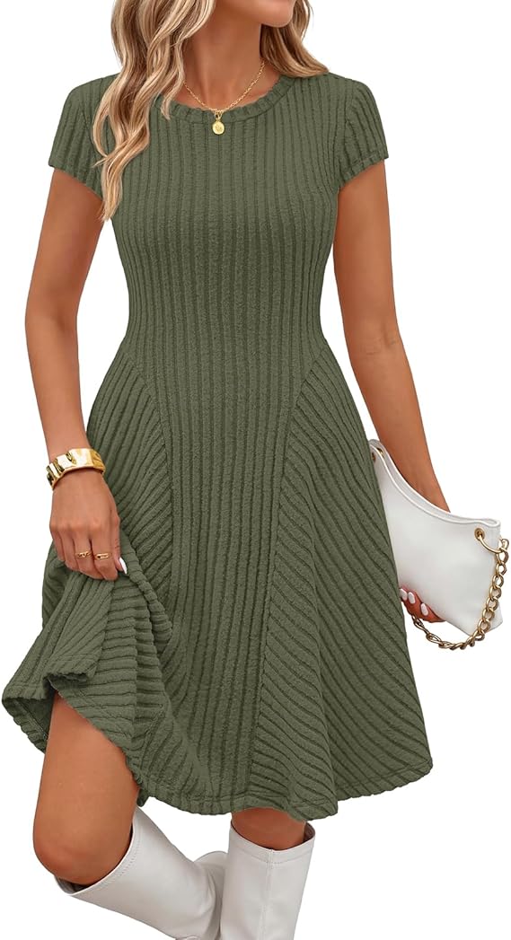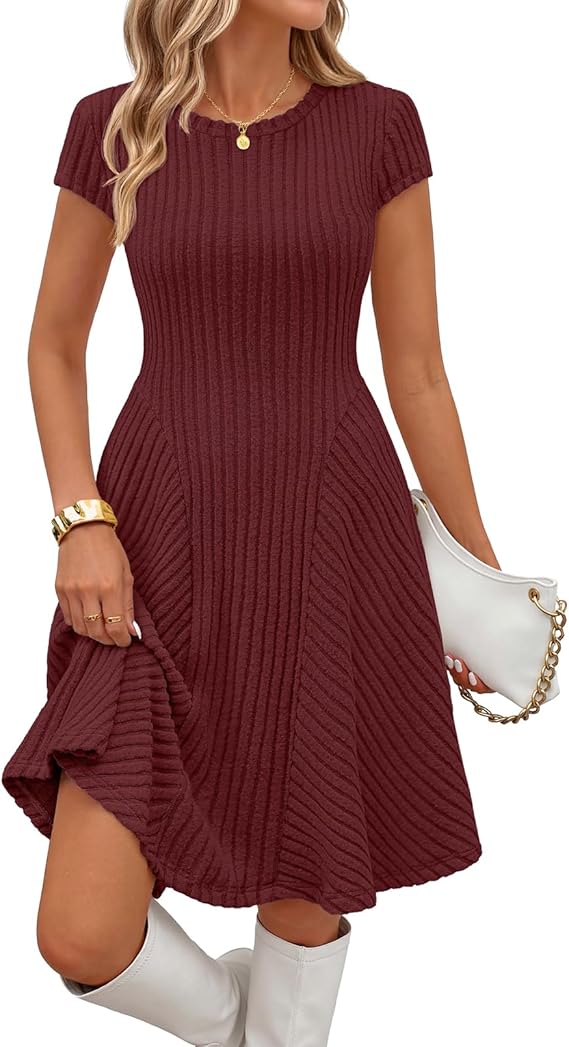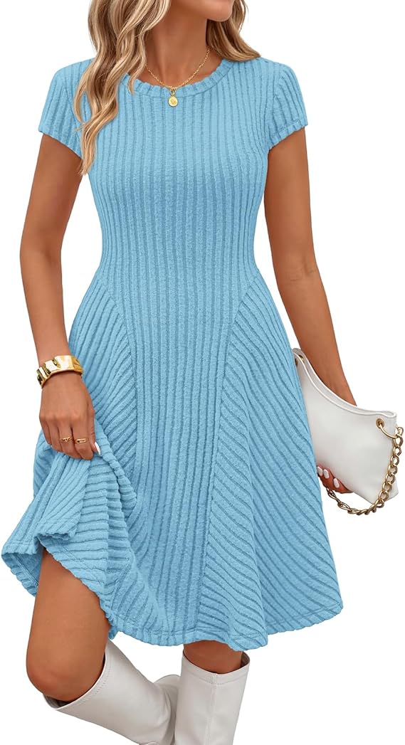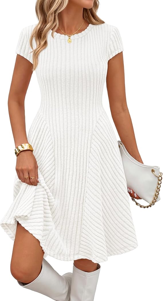 MEROKEETY Women's Summer Ribbed Mini Sweater Dress 2026 Spring Casual Crewneck Cap Sleeve Knit A Line Short Dresses