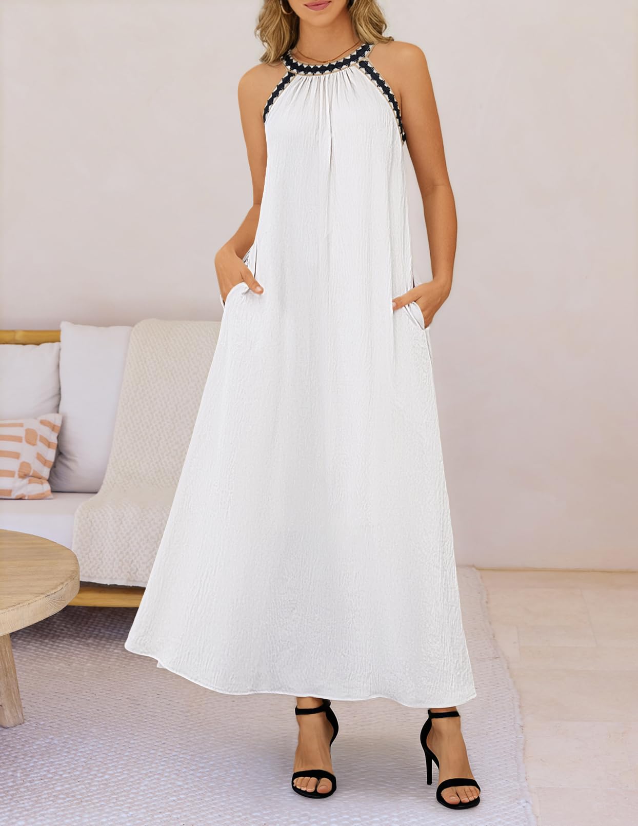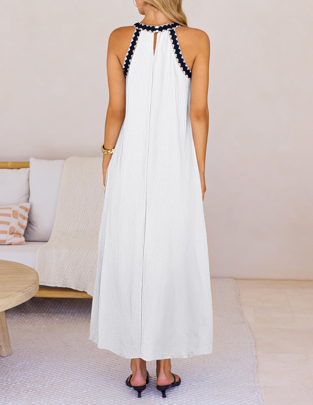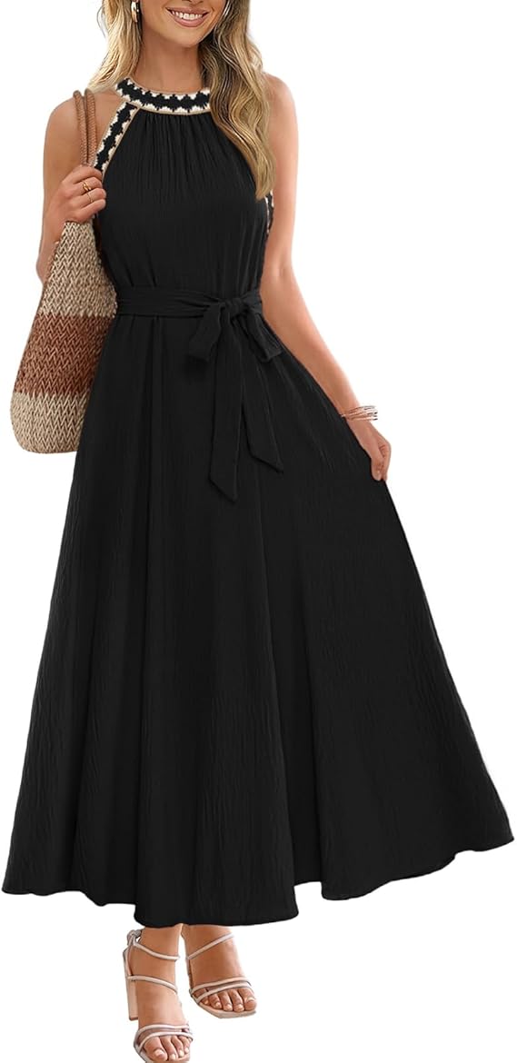MEROKEETY Women's Summer Sleeveless Halter Neck Maxi Dress 2026 Boho Flowy Swing Beach Vacation Dresses with Belt
