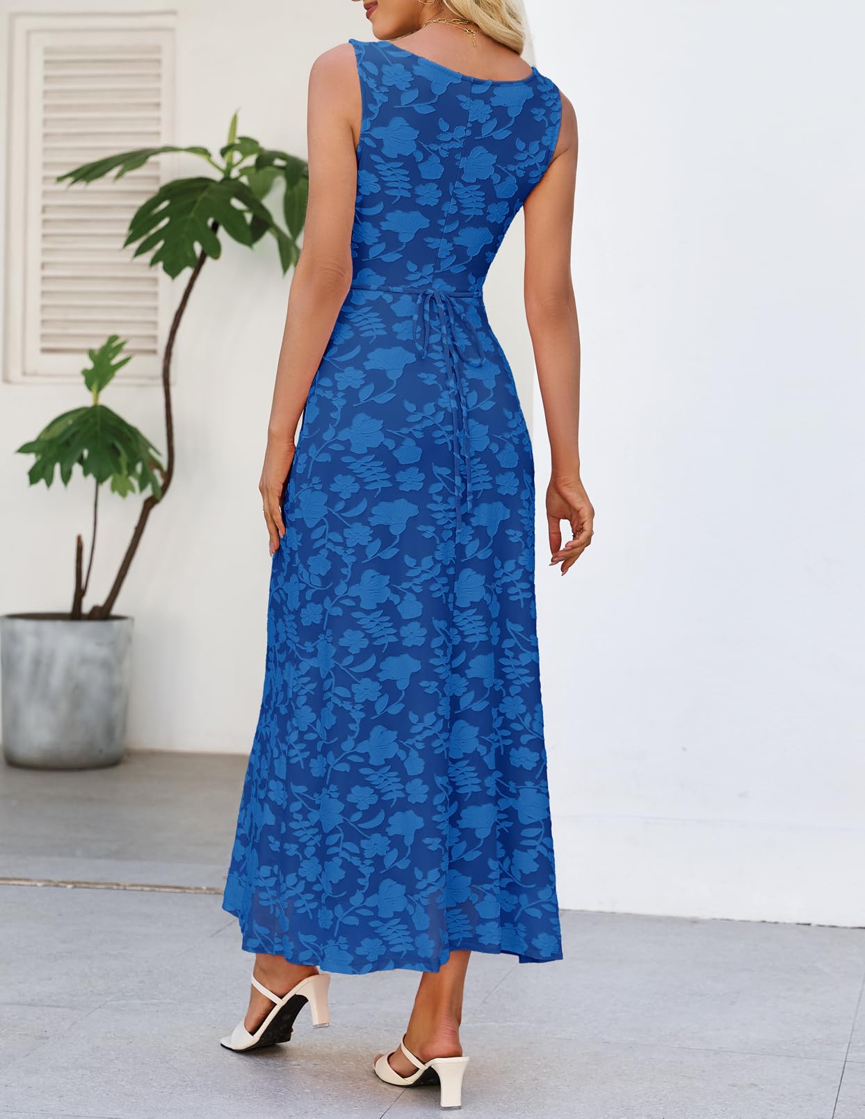 MEROKEETY Womens 2026 Summer Floral Maxi Dress Sleeveless Tie Waist Elegant Formal Bodycon Wedding Guest Party Long Dresses